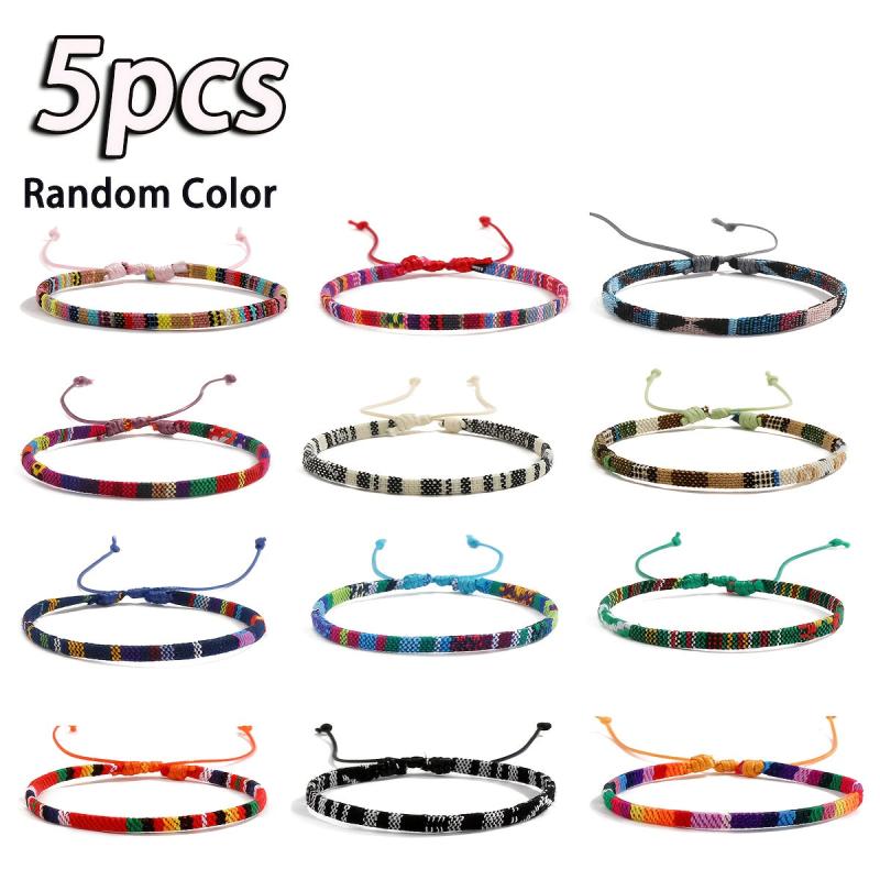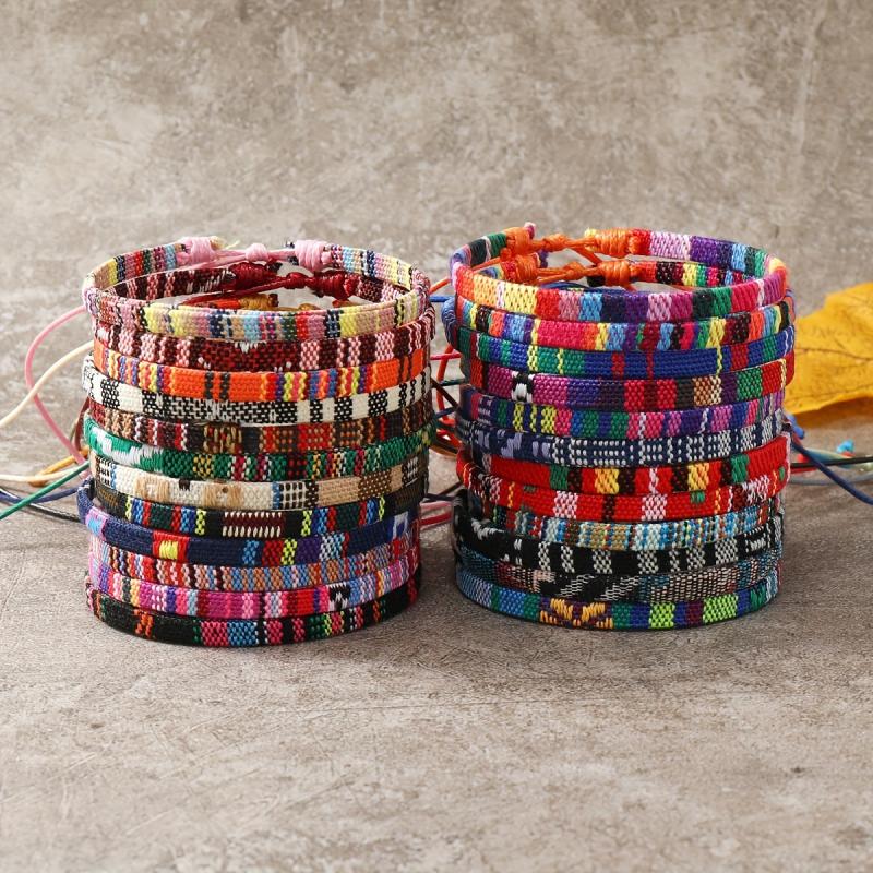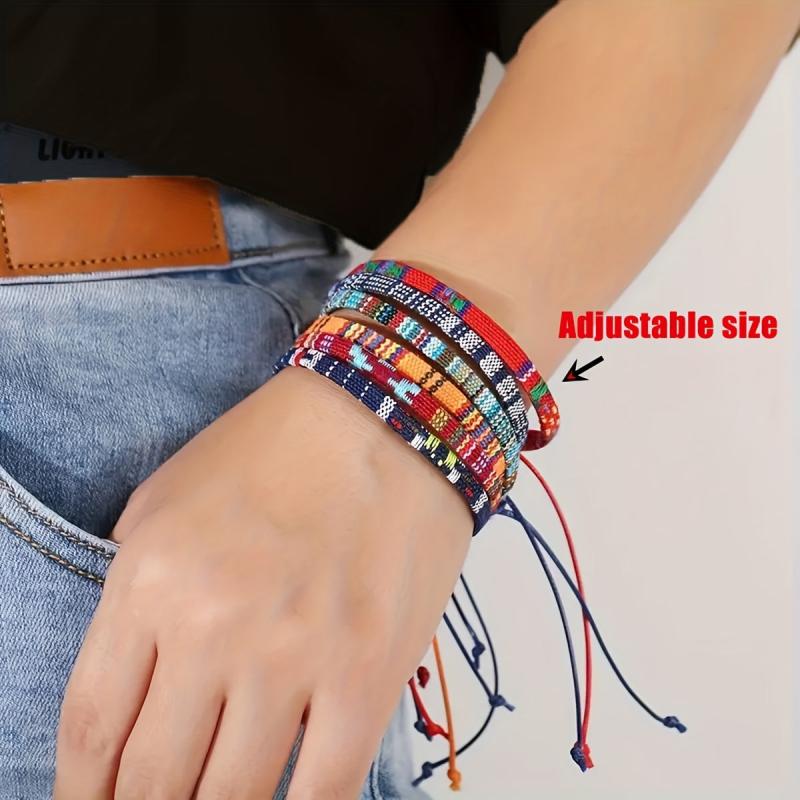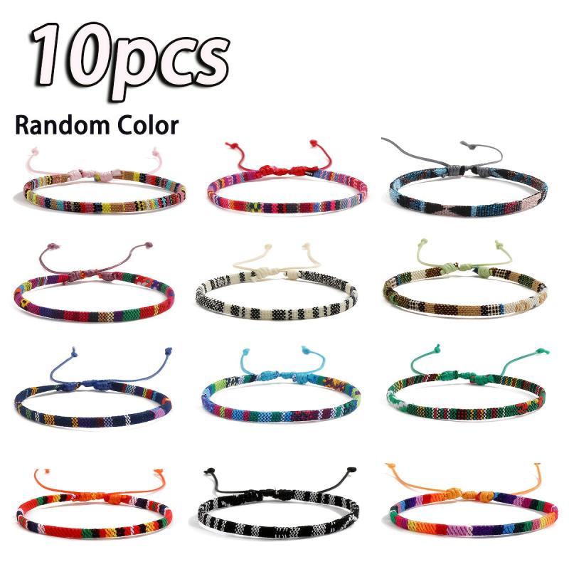 Embrace the bohemian style with this set of 10 friendship bracelets made from polyester fabric. Each bracelet features a bright and colorful design that adds a pop of fun to your outfit.