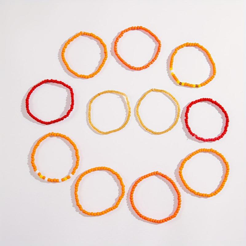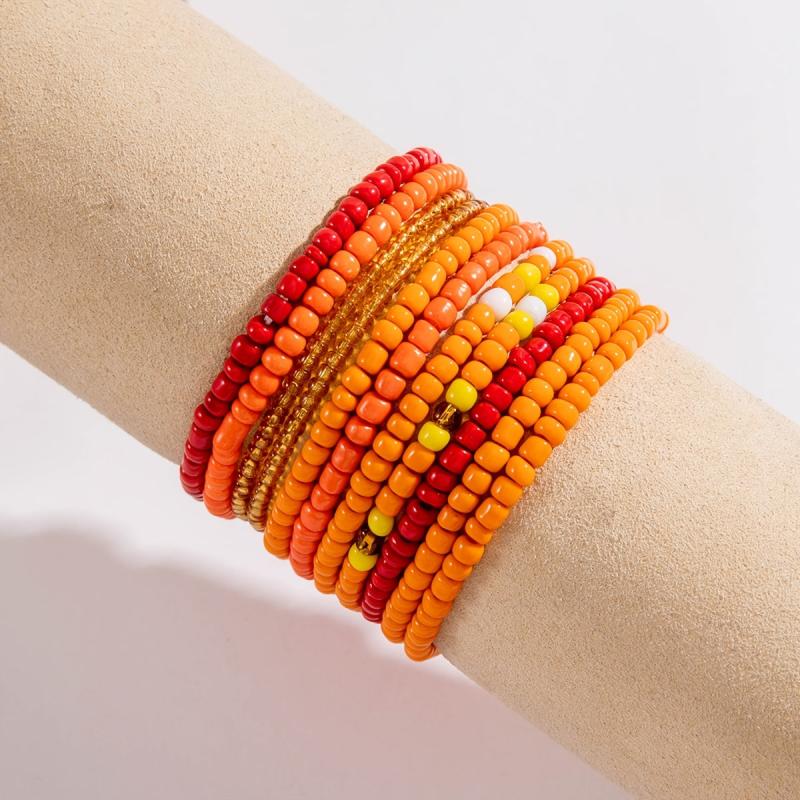 Elevate your style with this 11-piece bracelet set featuring a bohemian vacation vibe in orange rice beads. Perfect for daily wear, parties, and gifting to friends.