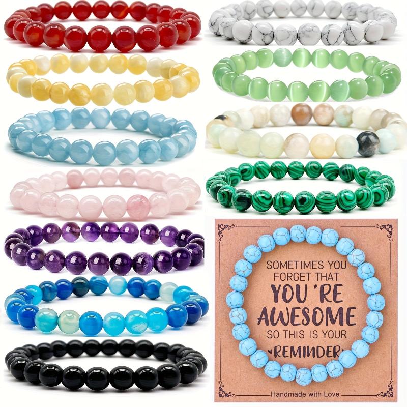 Elevate your style with this set of 12 mineral elastic bracelets featuring natural stone 8mm beads. Perfect for any occasion!