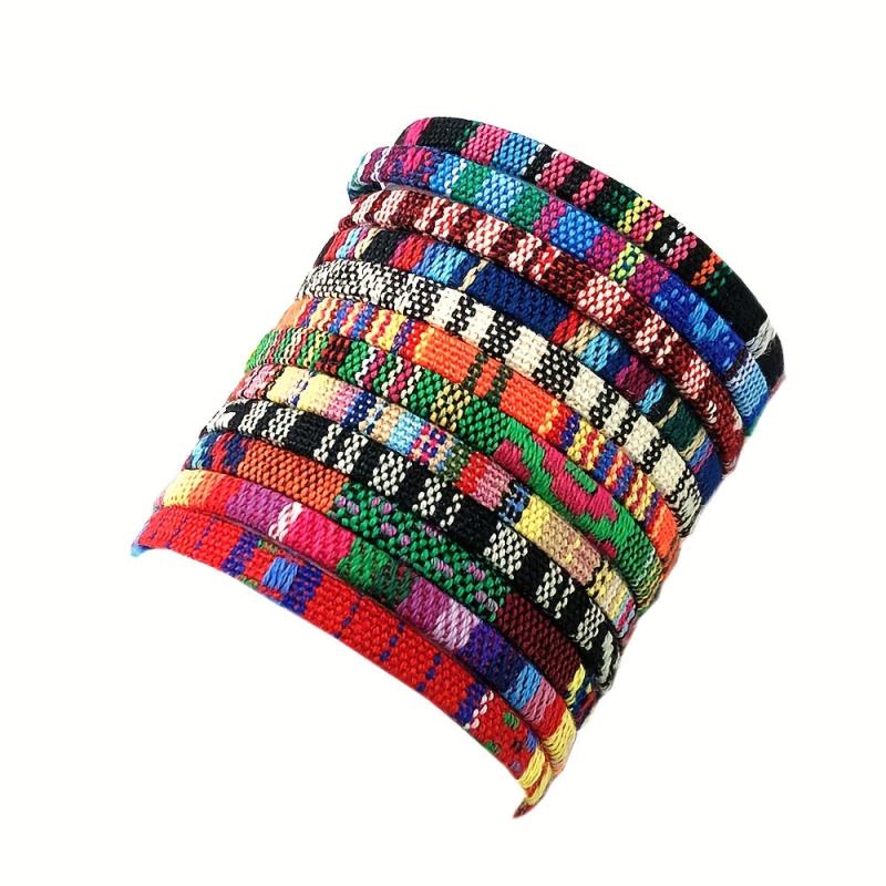 Embrace literary-inspired style with these colorful striped diamond-shaped bracelets handcrafted in Nepal. Crafted from printed fabric, this set of 12 retro bracelets is perfect for adding a unique touch to your look.