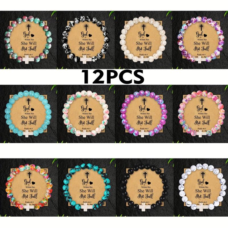 This bracelet set includes 12 pieces of cross bracelets, making it a thoughtful and heartwarming gift for women such as moms, daughters, sisters, and aunts. Each bracelet is designed with a unique style, perfect for adding a touch of faith and fashion to any outfit.