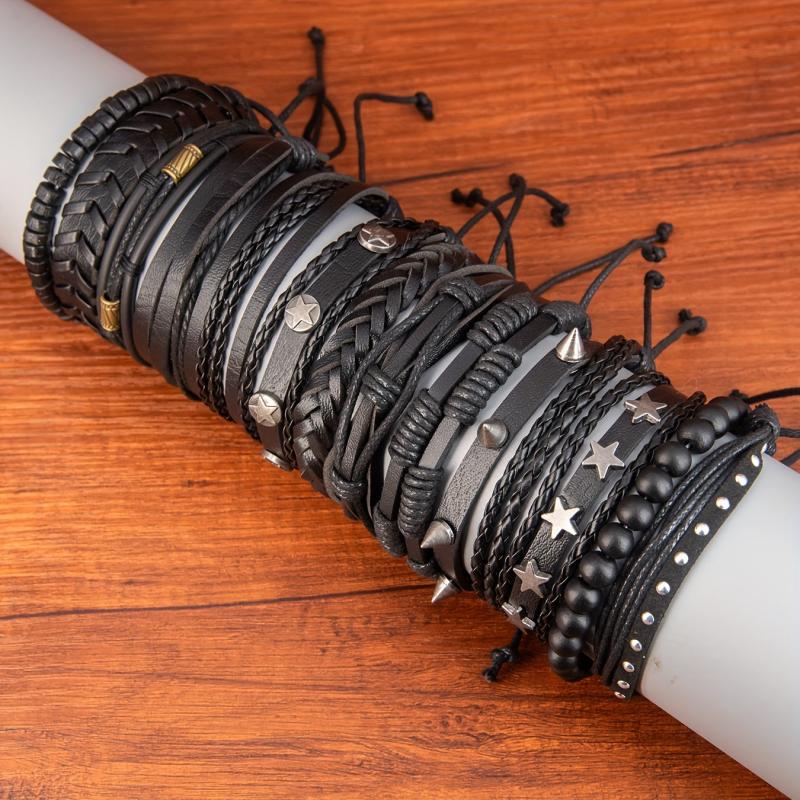 Adjustable and perfect for daily wear or as a gift for Christmas. Made of high-quality PU leather, this set of bracelets is stylish and trendy.
