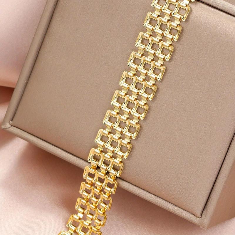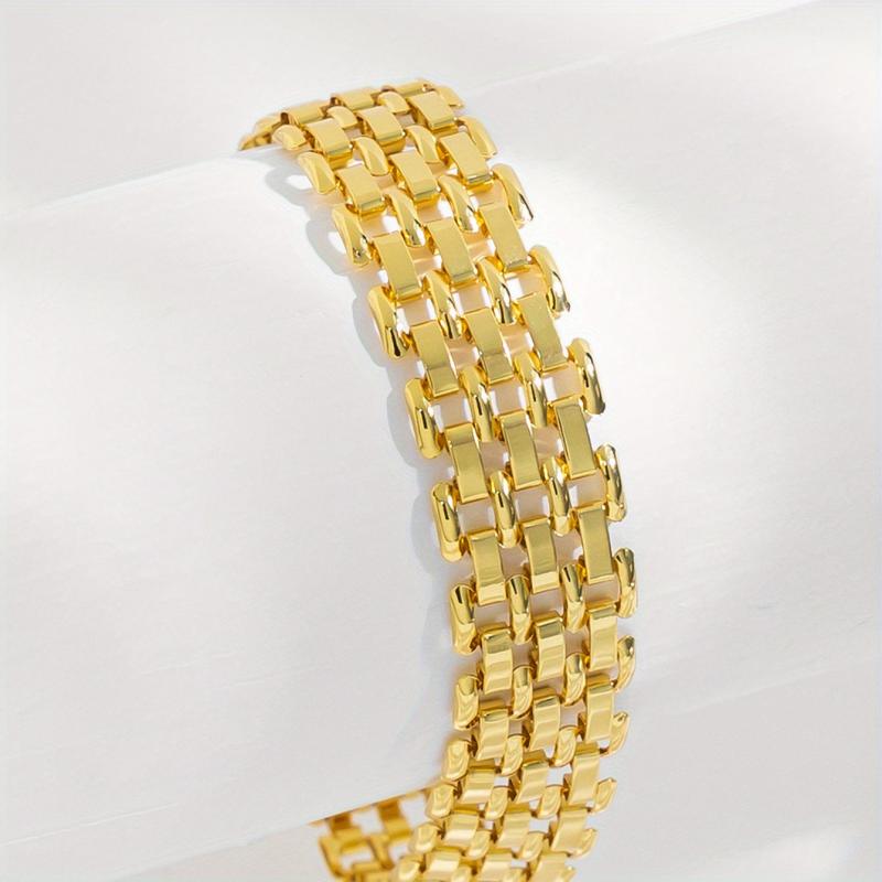 Add a touch of glam to your daily and vacation outfits with this 18K gold plated link bracelet. It is versatile and can be worn in all seasons. No need to worry about tarnishing thanks to the high-quality materials used in its construction.