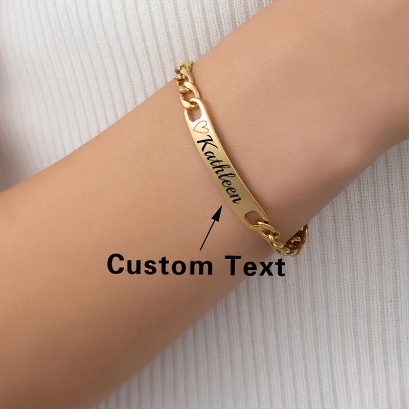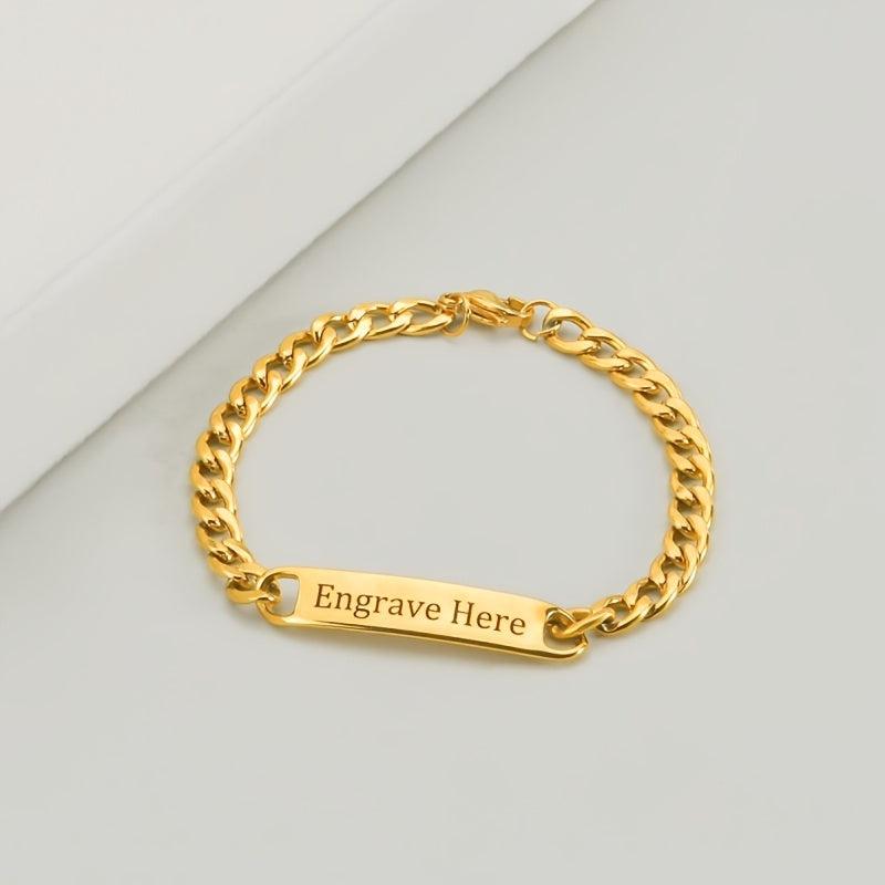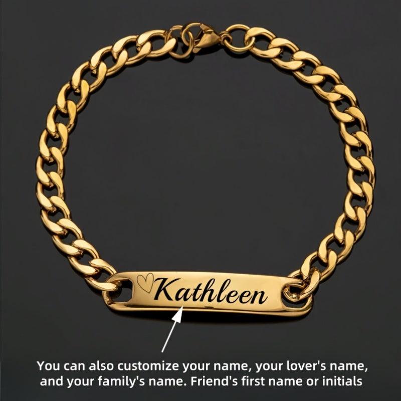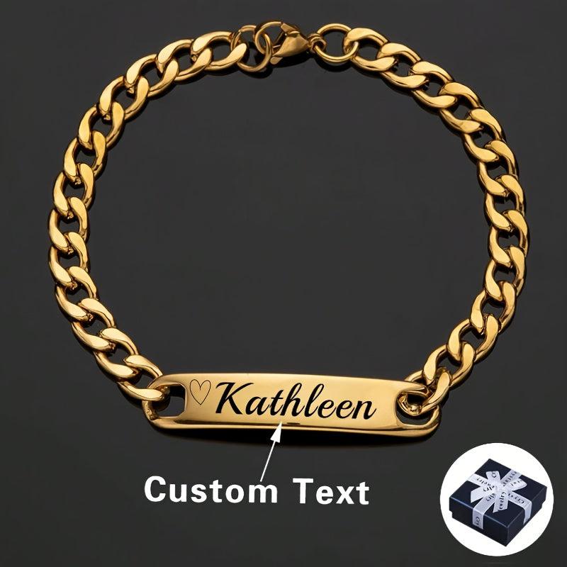 This stunning 18K gold plated stainless steel bracelet is the perfect personalized gift for anniversaries, Father's Day, Mother's Day, graduations, and Christmas for your loved one. The bracelet can be custom engraved with a name or special message.