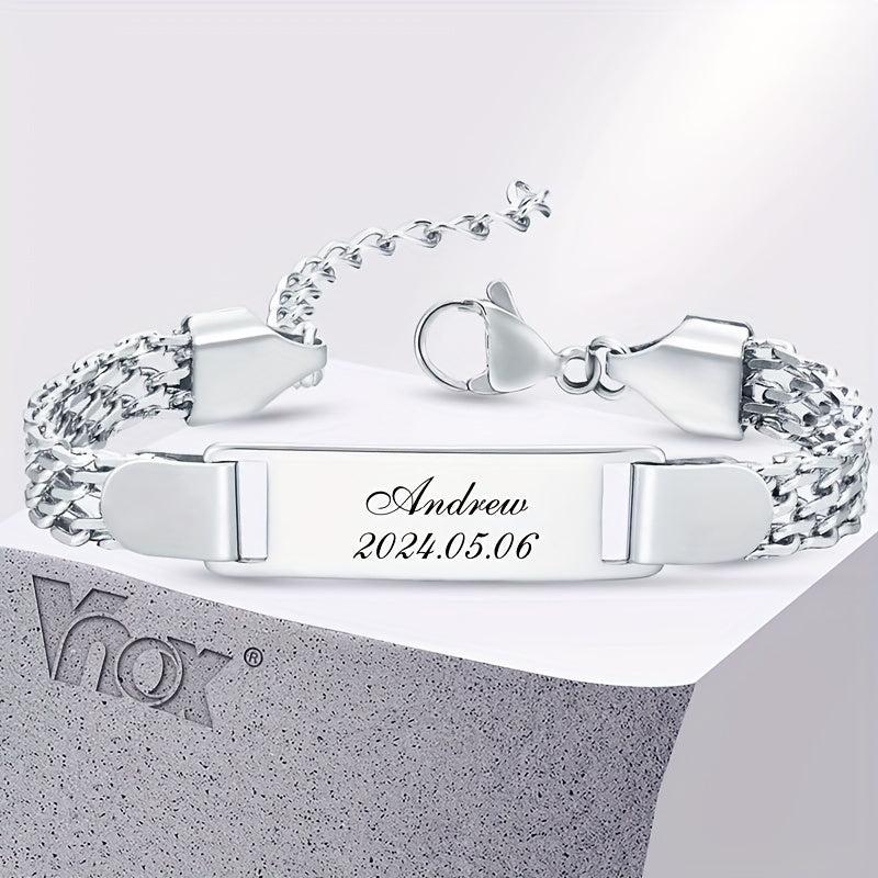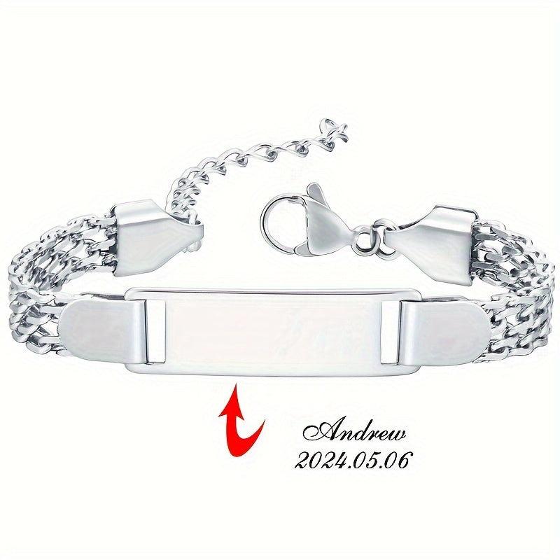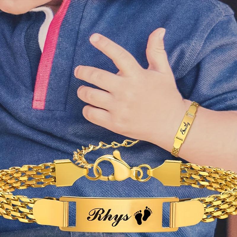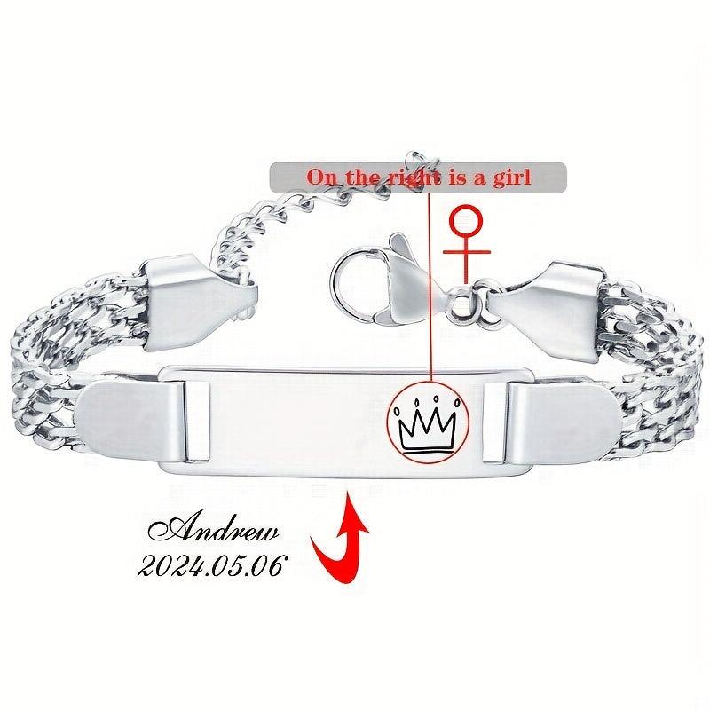 18K Gold Plated Stainless Steel Bracelet Personalized Name & Date Engraved