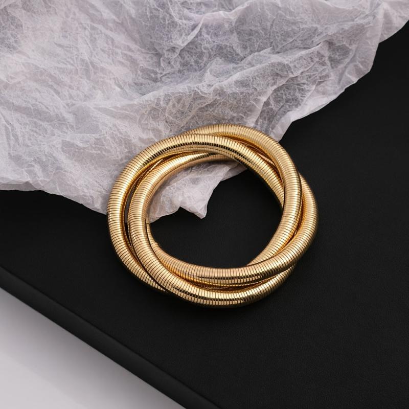 Enhance your style with this stunning set of 18K gold plated stainless steel bracelets. The elastic thick bangle with stainless steel chain offers a flexible and comfortable fit for daily wear or as a special gift.