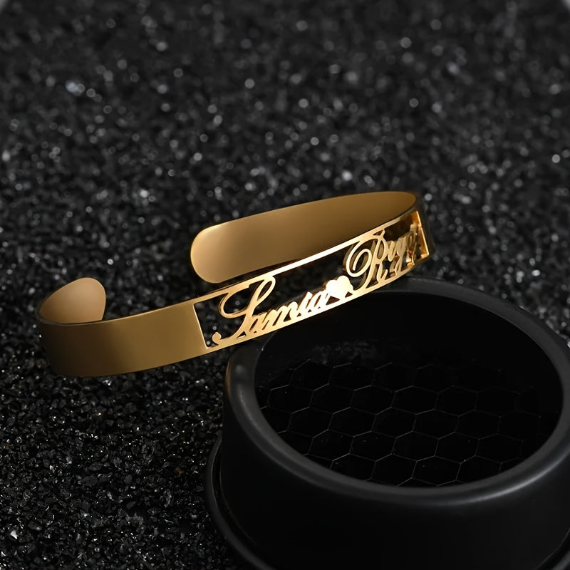 This adjustable cuff bracelet is a perfect gift for couples, friends, or as a Valentine's Day present. The high-quality stainless steel is plated with 18K gold, making it a luxurious and stylish accessory for any occasion.