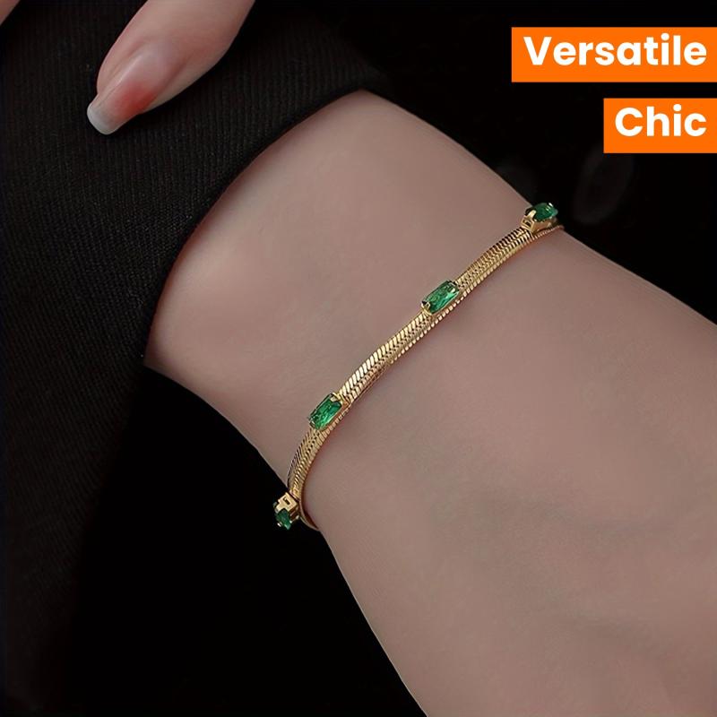 Elegant and versatile bracelet featuring green and yellow zirconia gemstones. Perfect for daily wear or vacation styling.