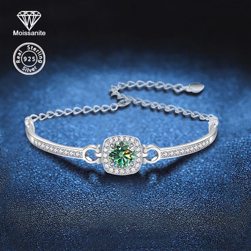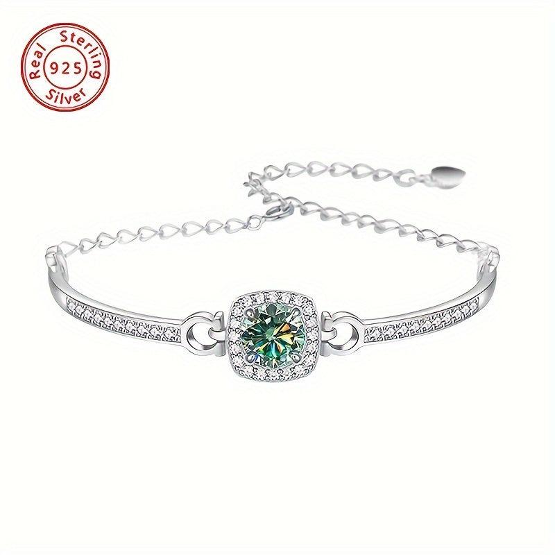 This stunning 925 silver bracelet features a 1CT square cut moissanite gemstone surrounded by sparkling accents. Ideal for adding a touch of elegance to any outfit.