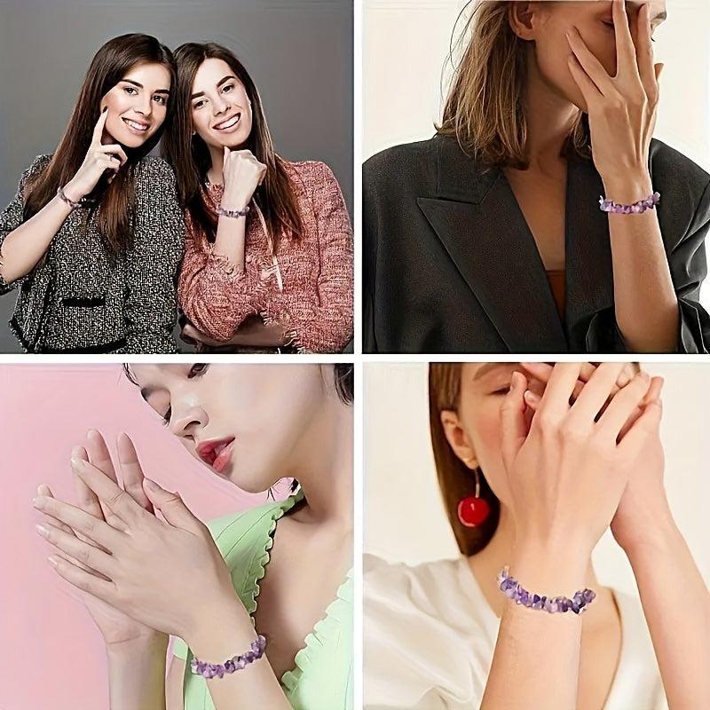 Elevate your style with these 2-piece natural amethyst chip stone stretch bracelets, perfect for women. These trendy accessories make an ideal gift for Thanksgiving, Christmas, or any special occasion.