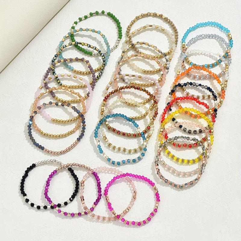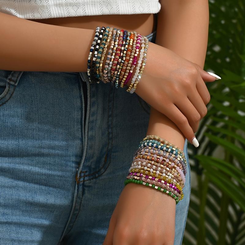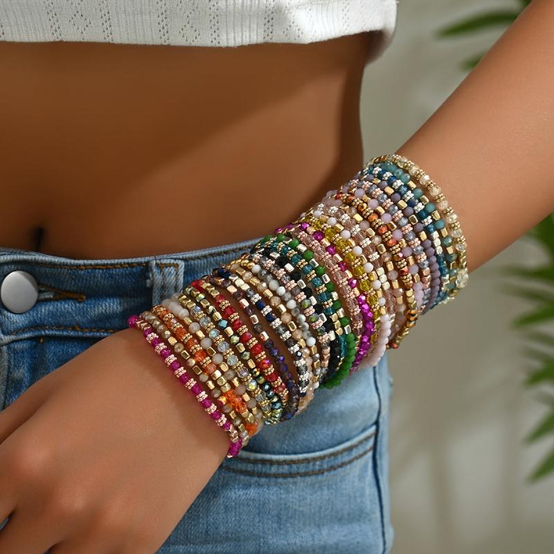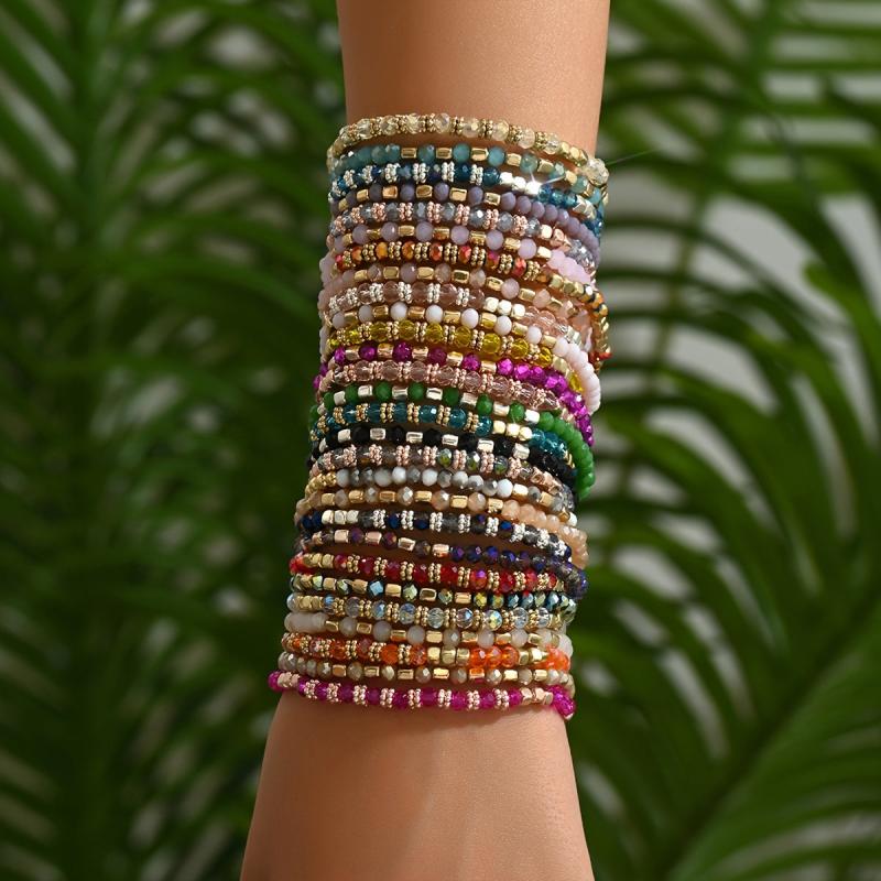 Enjoy a mix of random colors in this set of 20 candy bracelets. Perfect for leisure and vacation wear, this European and American style bracelet combination adds a fun touch to your outfits.