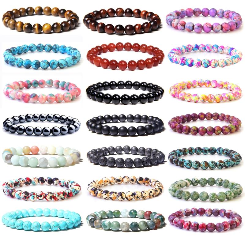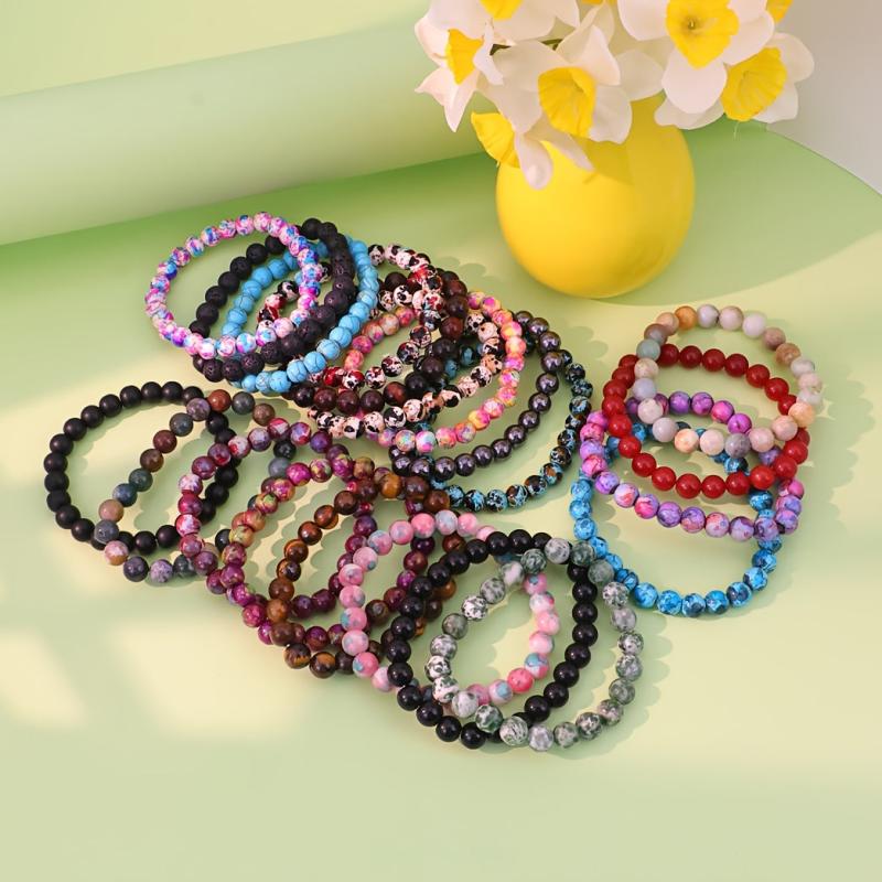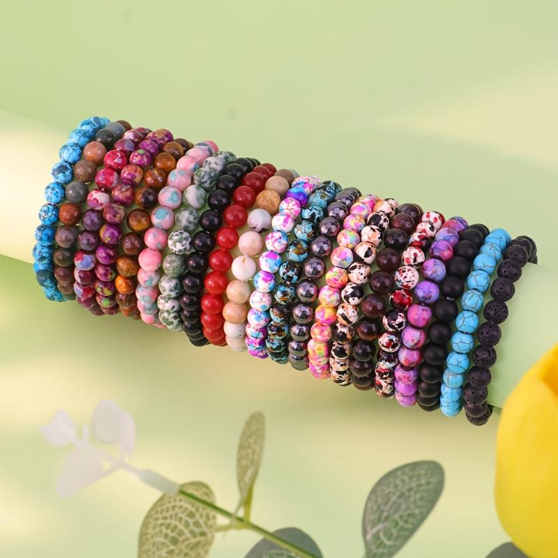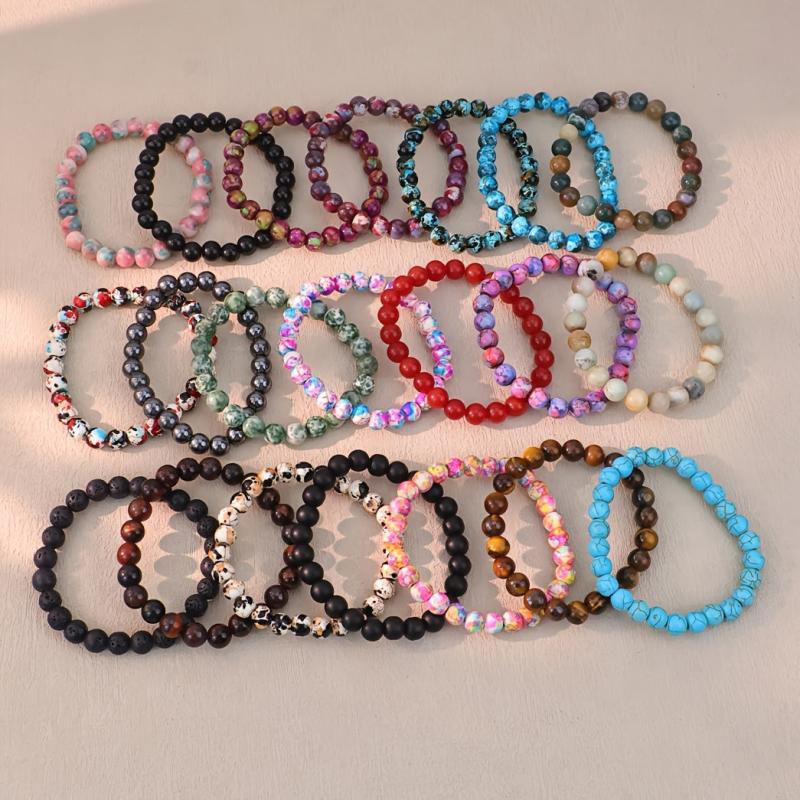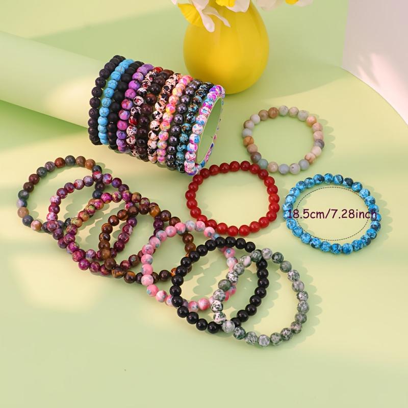 Get this set of 21 vintage-style beaded stretch bracelets featuring 8mm beads in assorted colors. Perfect for men and women, these bracelets are stylish and easy to wear.