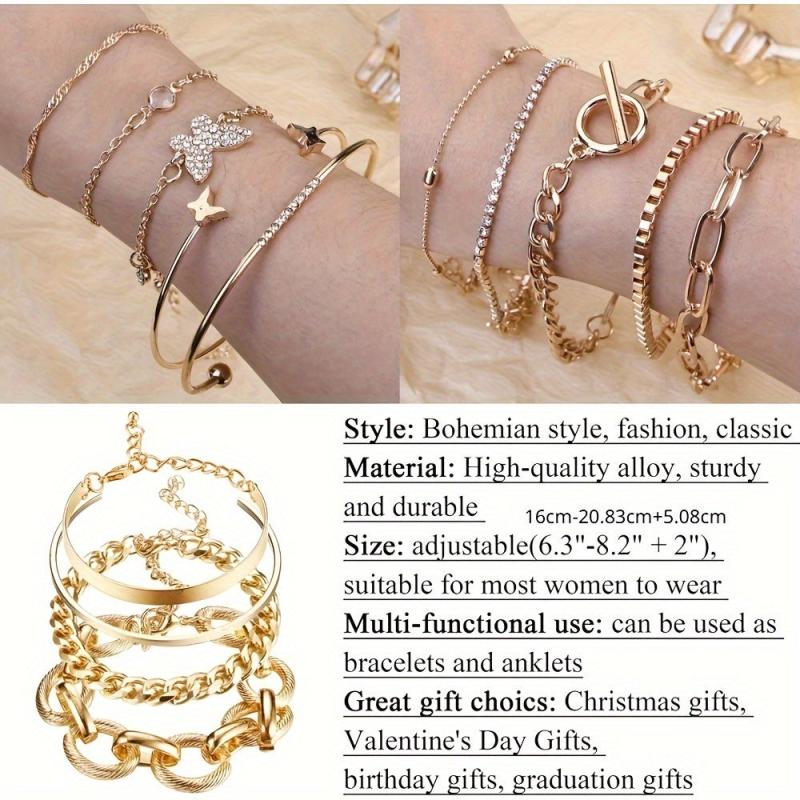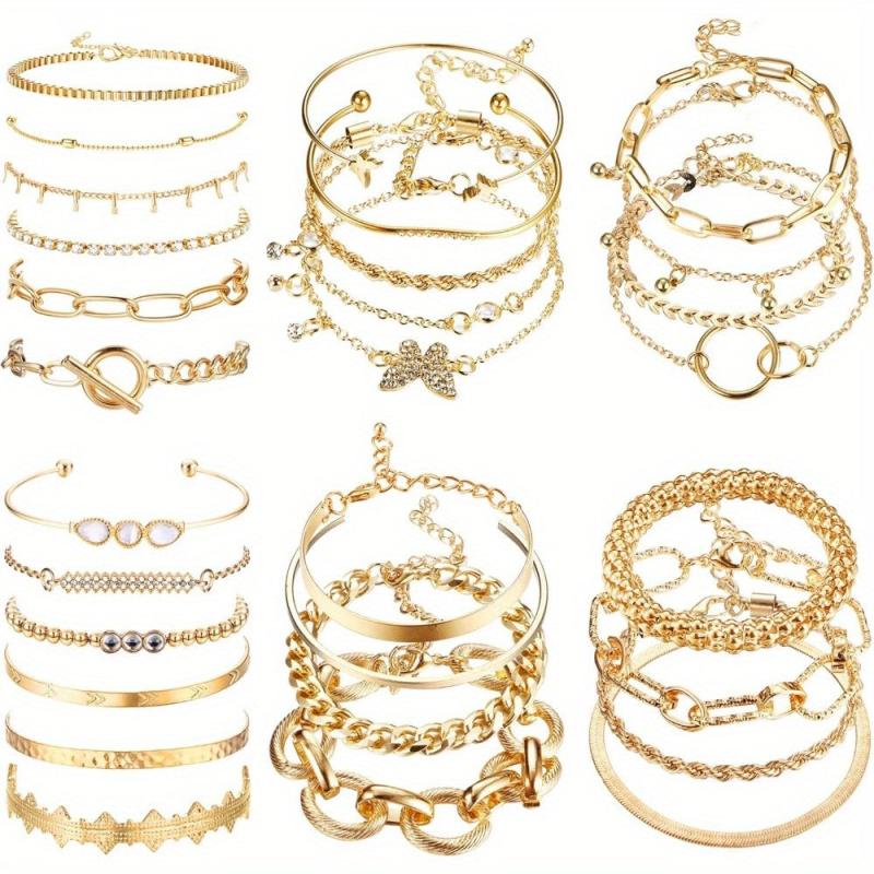 Elevate your style with this 27-piece stackable chain bracelet set. Featuring a boho dainty design, these bracelets are perfect for layering and adding a touch of elegance to your outfit.