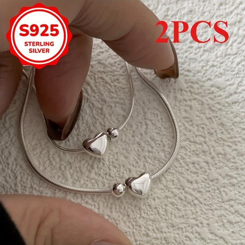 This set includes two 925 sterling silver bracelets with heart pendants in a vintage tribal style. They are suitable for everyday wear and perfect for parties. Great Christmas gift!