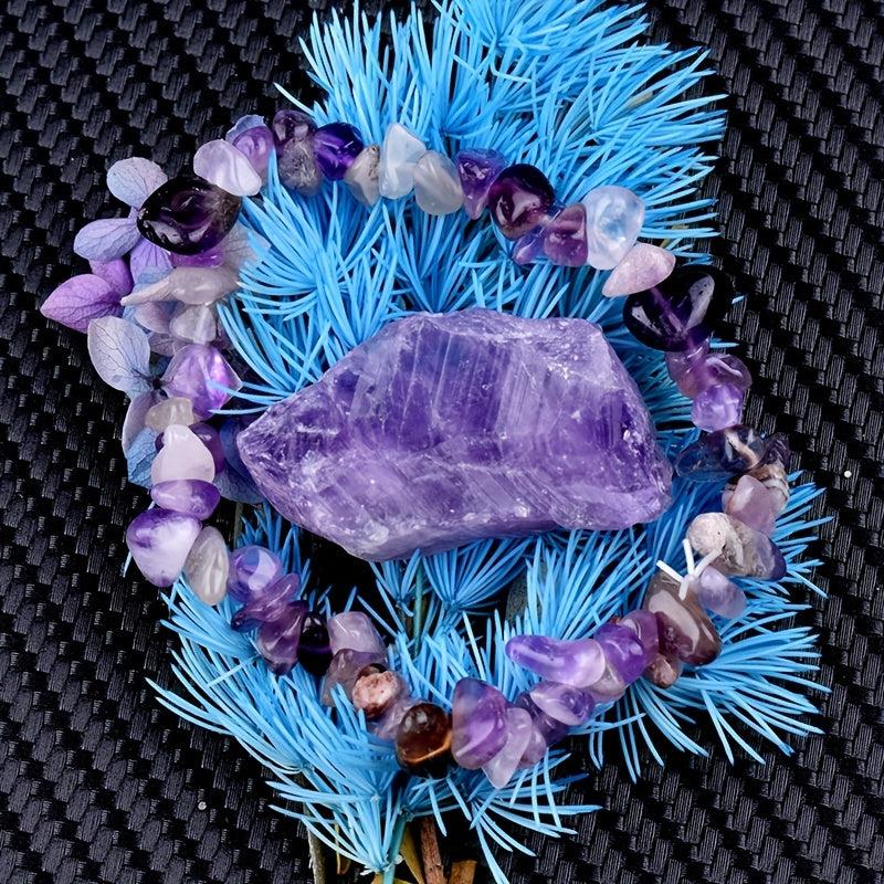 Beautiful set of natural amethyst and clear quartz bracelets, perfect for love, Christmas, or Mother's Day gifts.