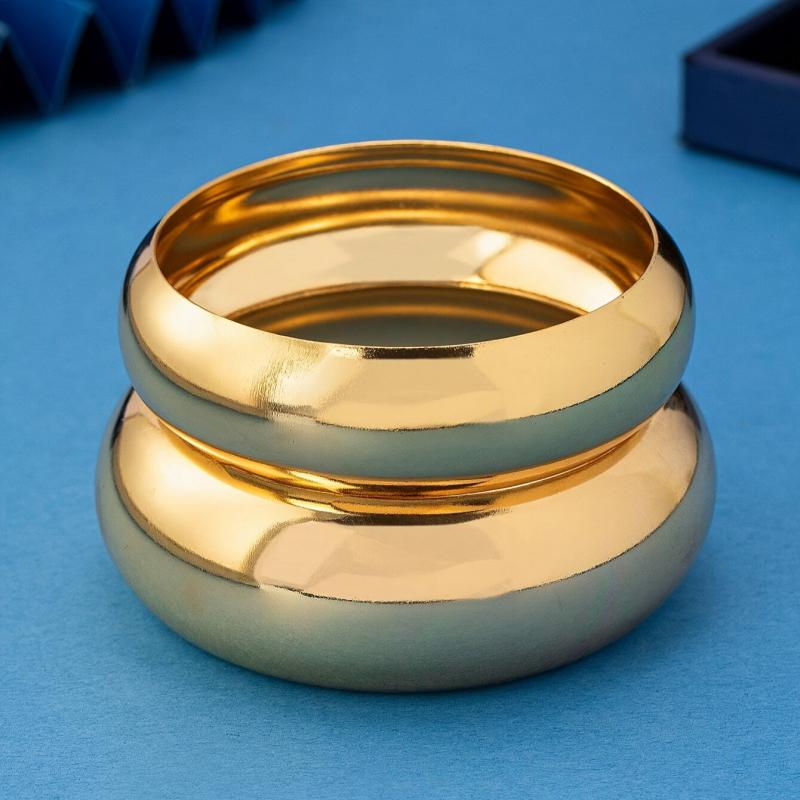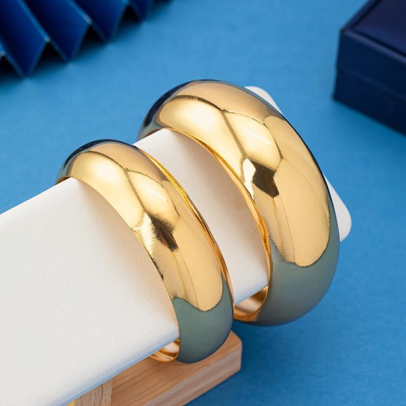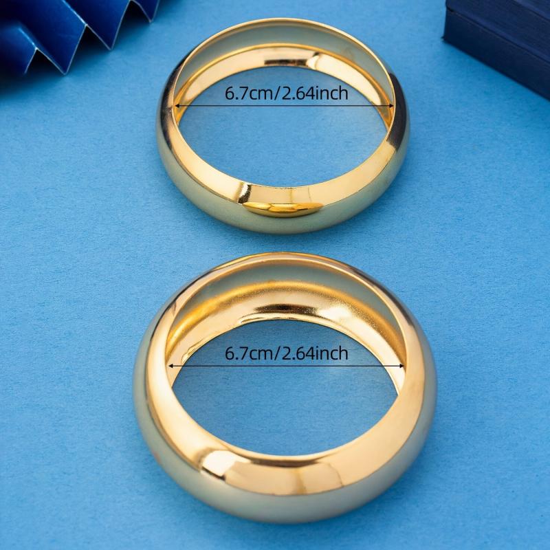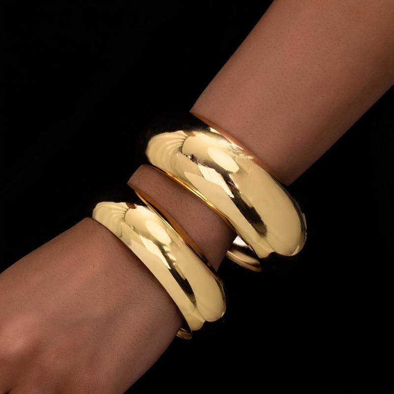Add a touch of vintage charm to your outfit with this set of 2 wide metal bracelets. These bracelets are designed in a classic and exaggerated style that is perfect for fashionable ladies.