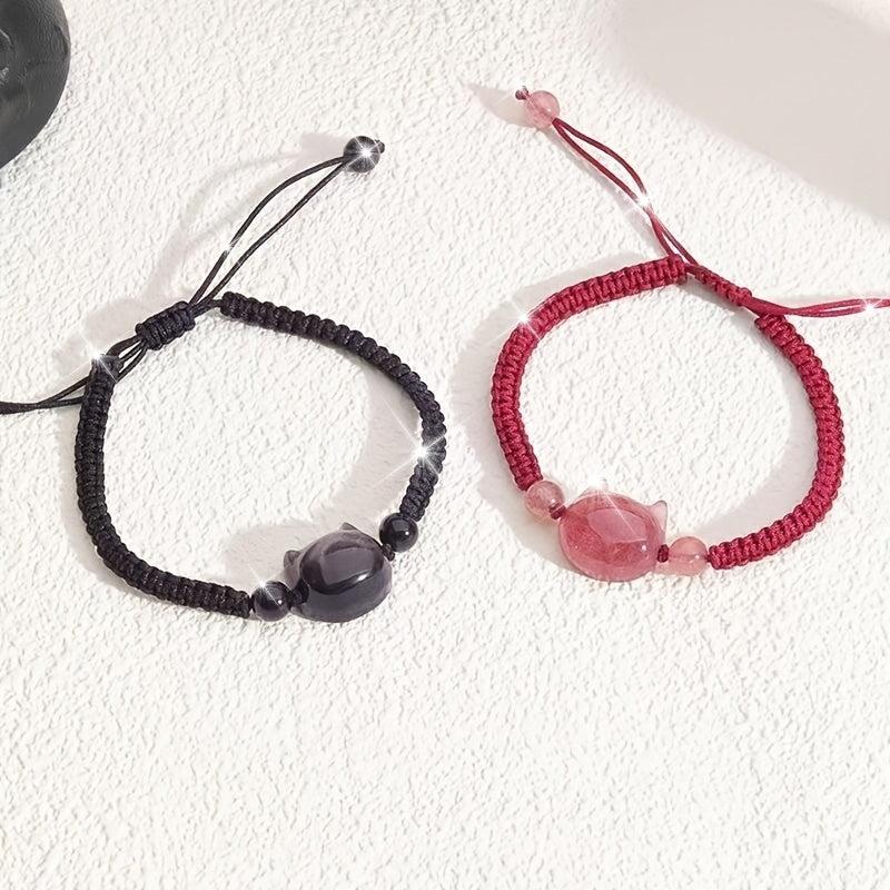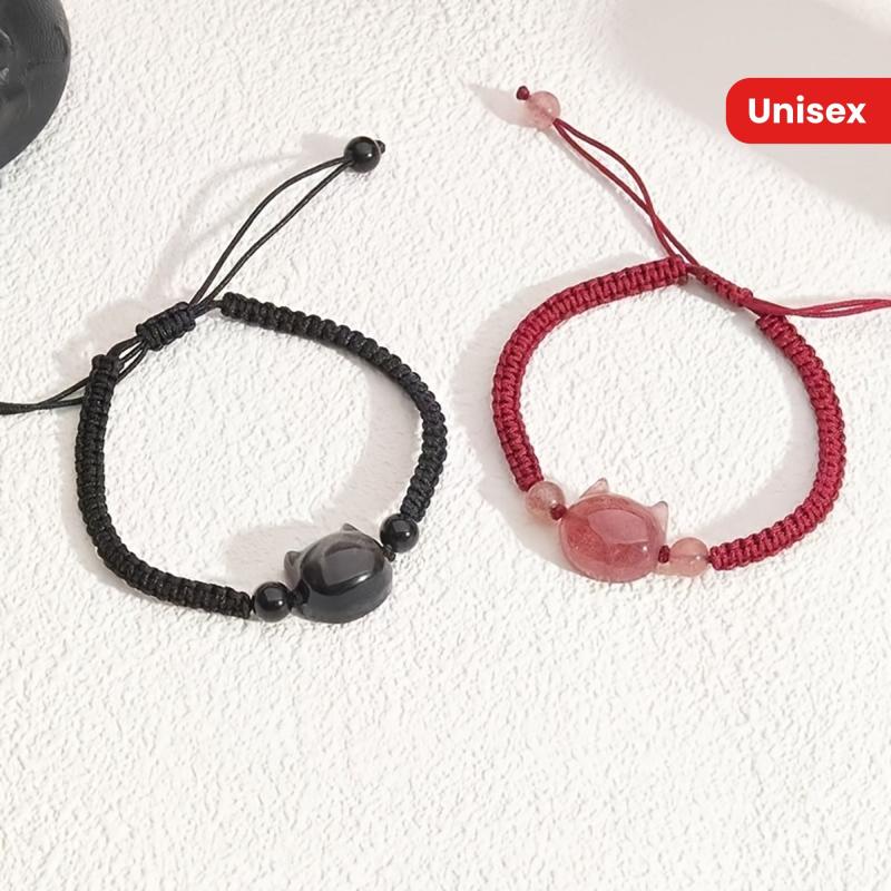 These unique friendship bracelets feature a cute No Face Cat design with artificial crystal beads. Perfect for couples or friends to wear together.