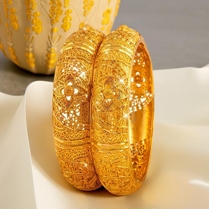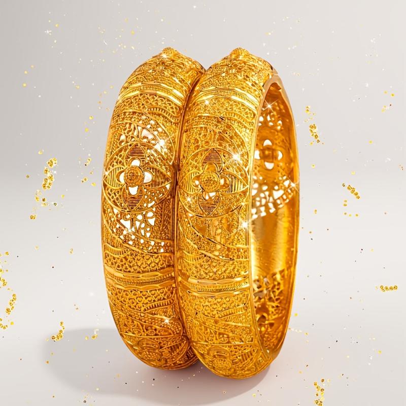 These 2 golden plated bracelets are perfect for various occasions. Showcasing a classic and comfortable design, they easily match with any outfit.