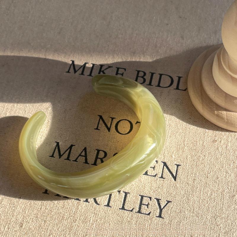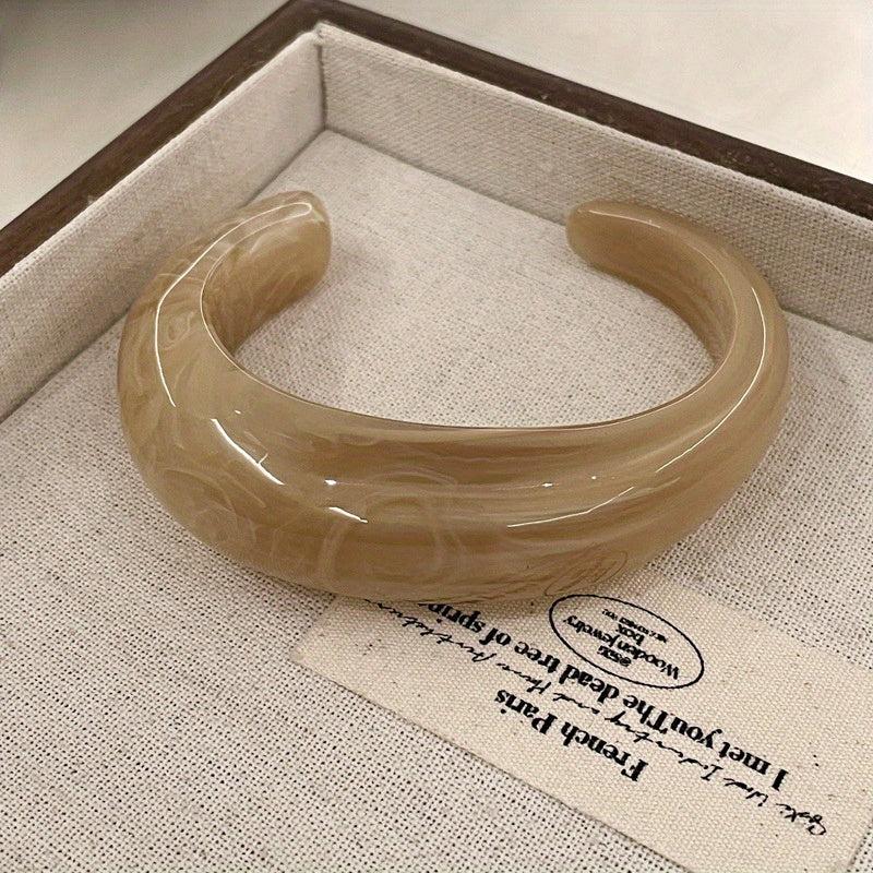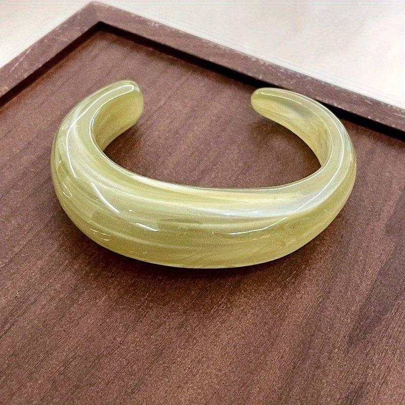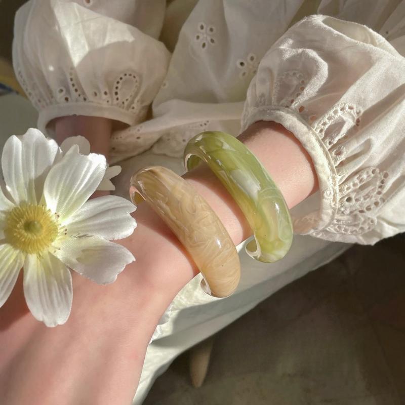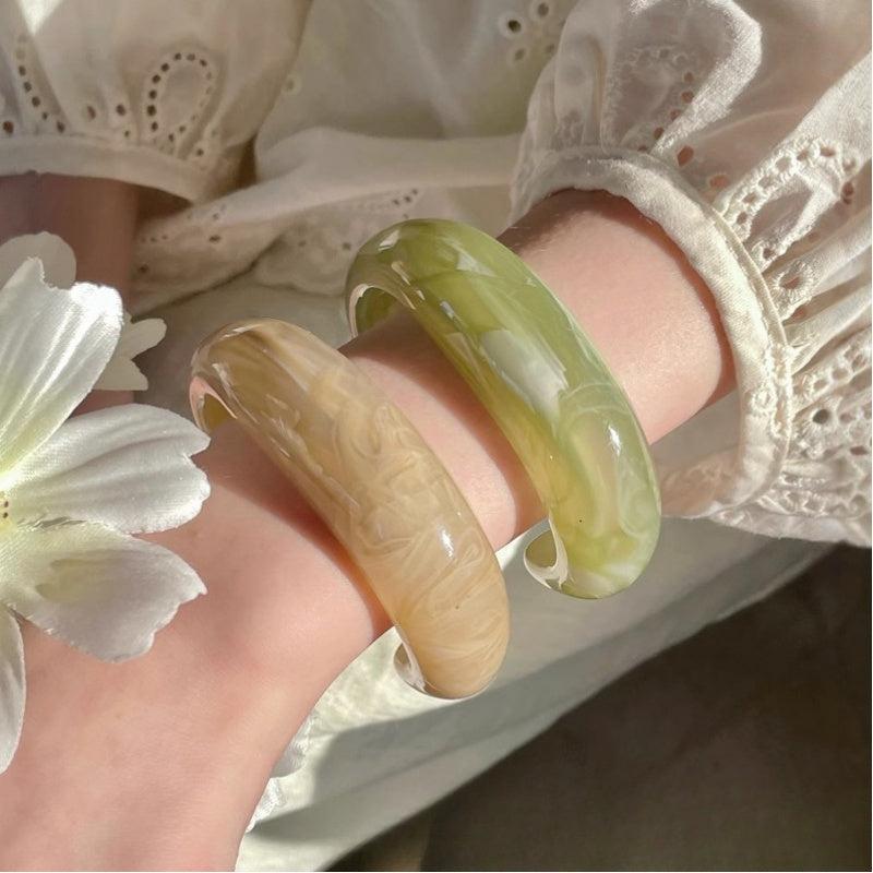 Add a touch of minimalist retro charm to your beach vacation outfit with this 2-piece bangle set. The bangles feature an irregular design in coffee and green colors, made of high-quality resin acrylic material.