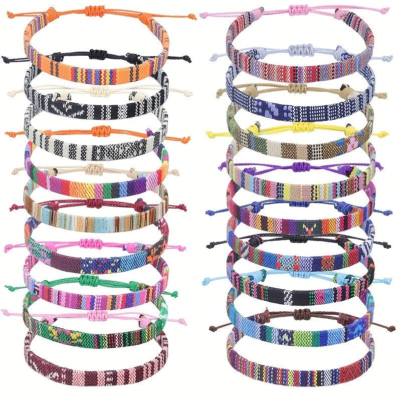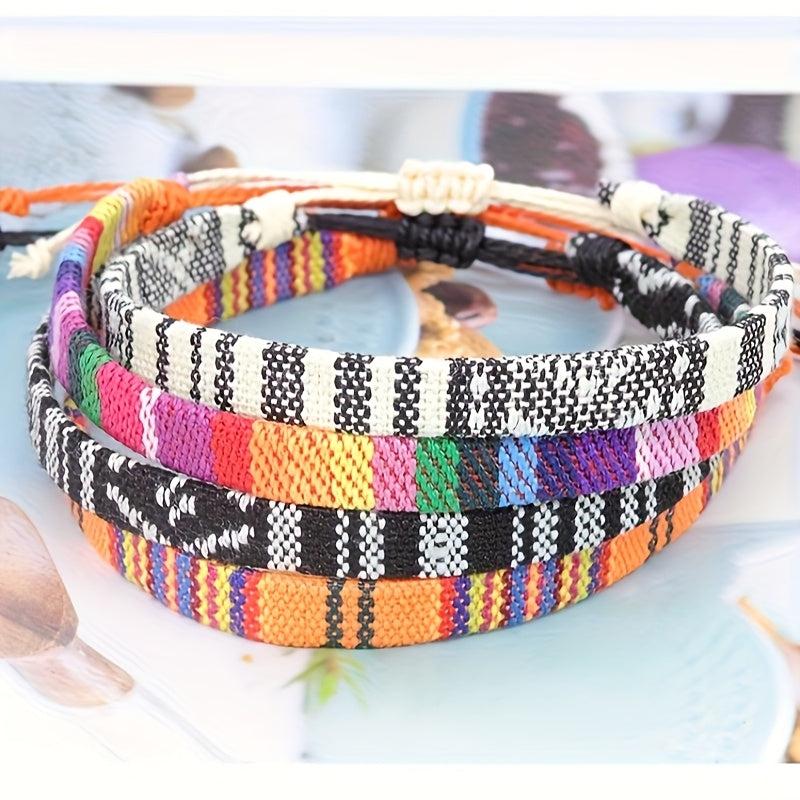 Enhance your beach look with these 2pcs unisex hemp bracelets featuring an ethnic style design. Made from woven fabric rope, perfect for travel or a day at the beach.