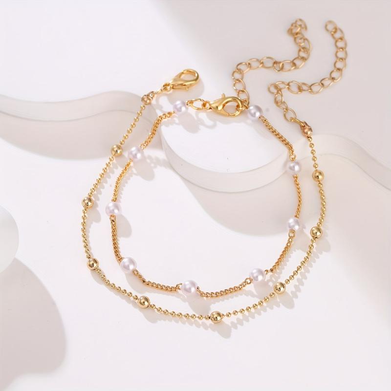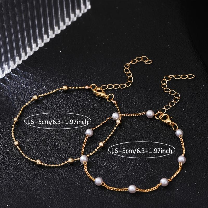 Elevate your look with this 2pcs set of artificial pearl bracelets for women. Each bracelet features a random pearl count for a unique and stylish design.