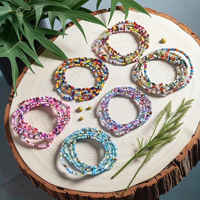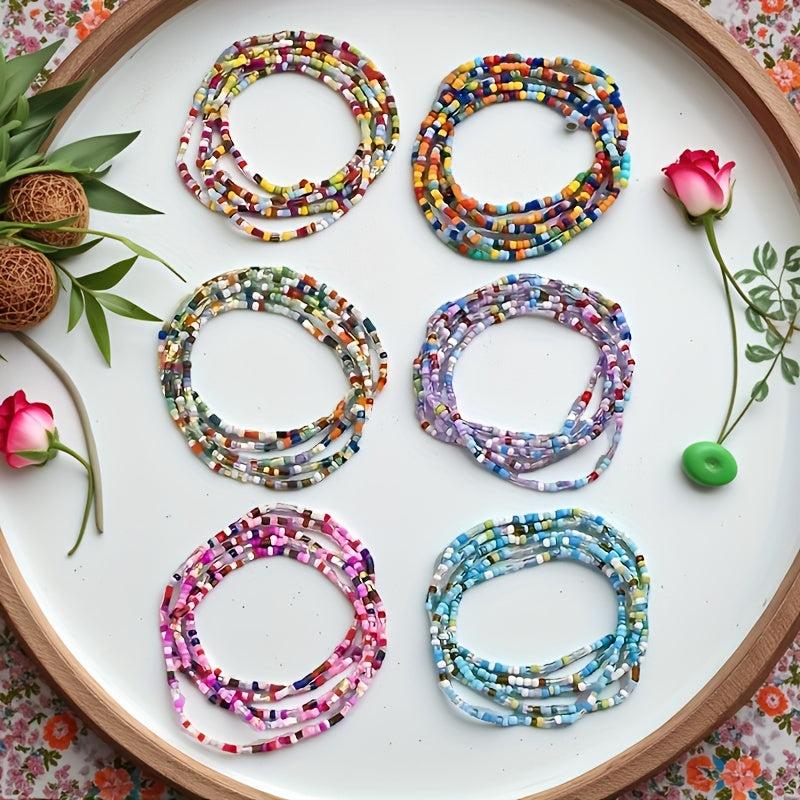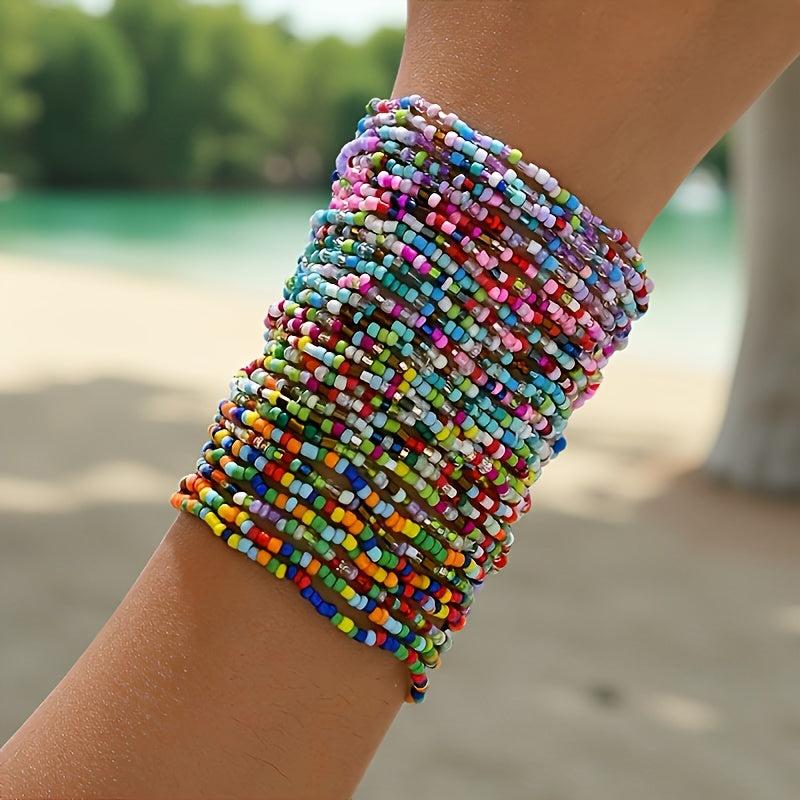 Elevate your beach parties with these vibrant bracelets featuring floral and geometric designs. Perfect for holiday beach fun or casual gatherings.