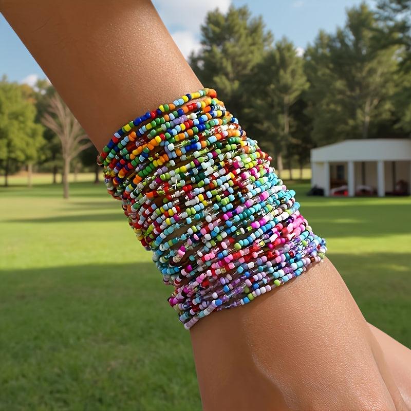 30pcs Colorful Beaded Bracelet Set Boho Style Stackable Resin Bangles
