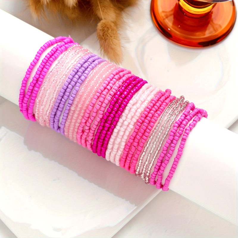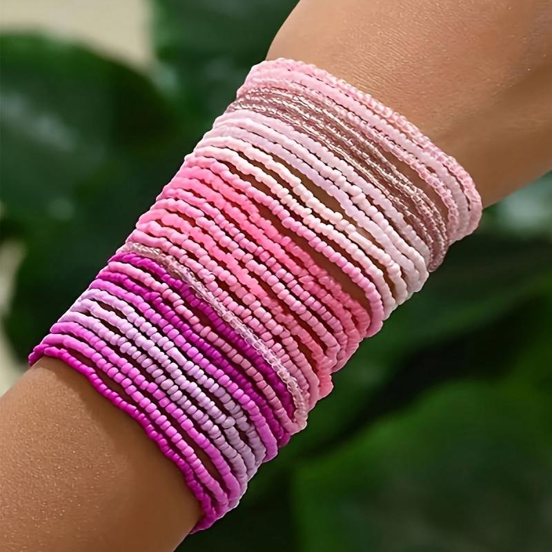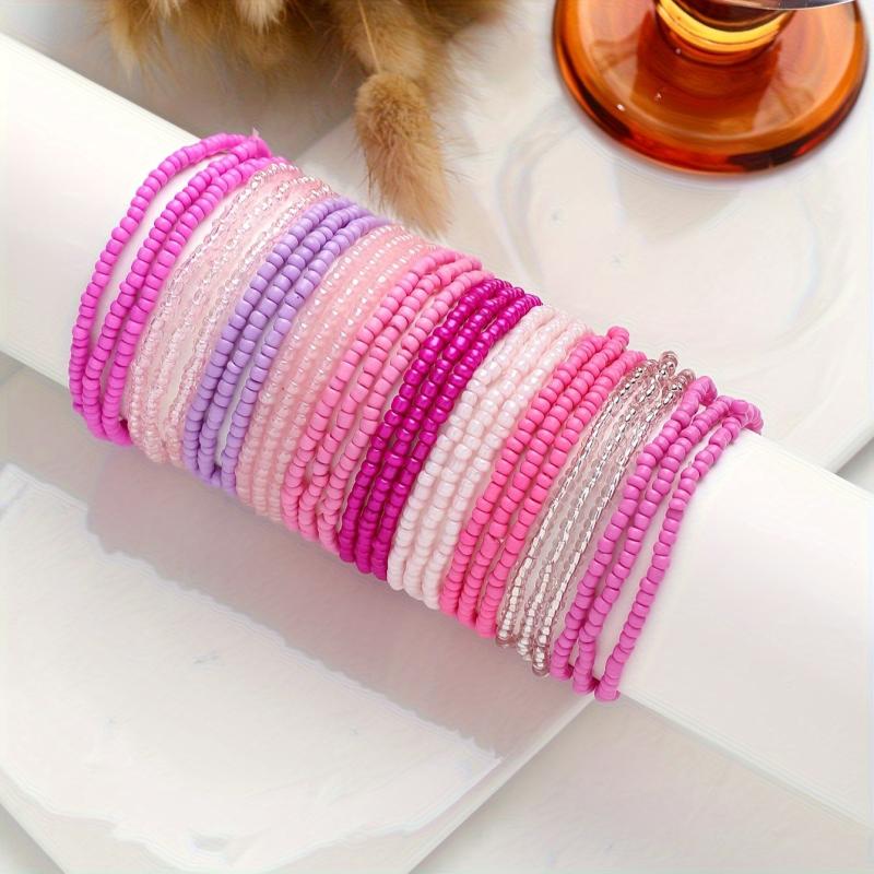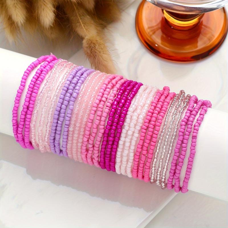 Get this set of 30 glass rice beads in 10 pink colors for a bohemian and ocean style. Perfect for beach bracelets.
