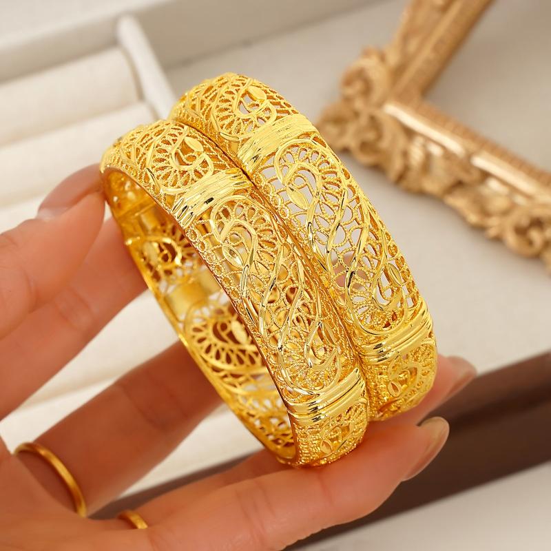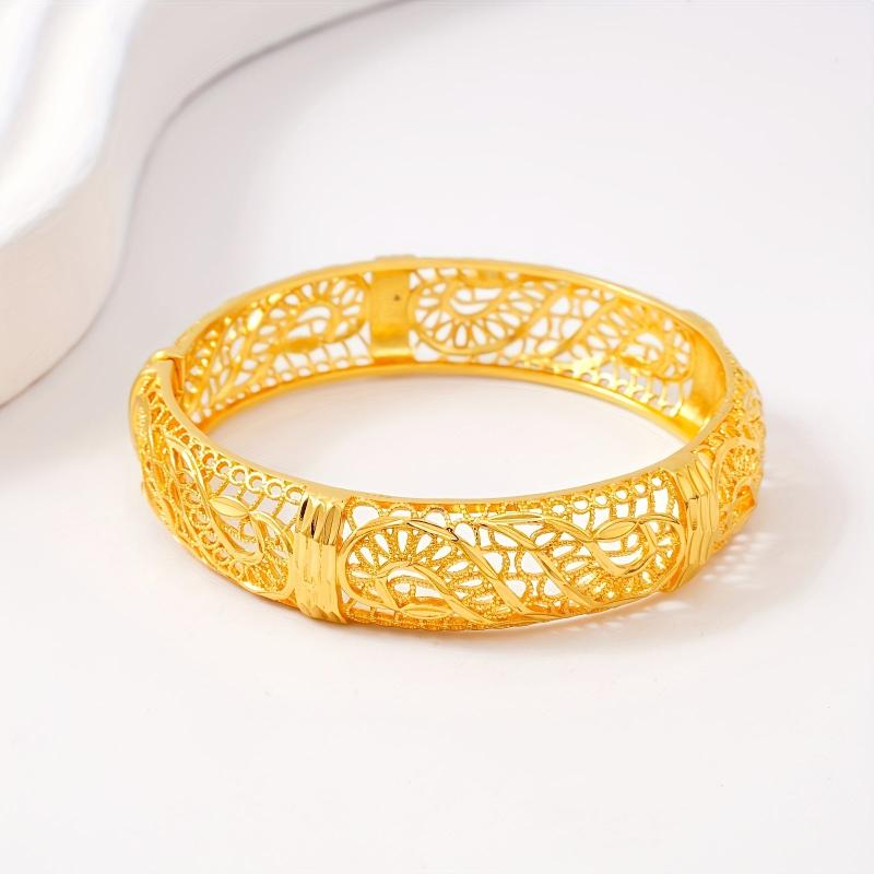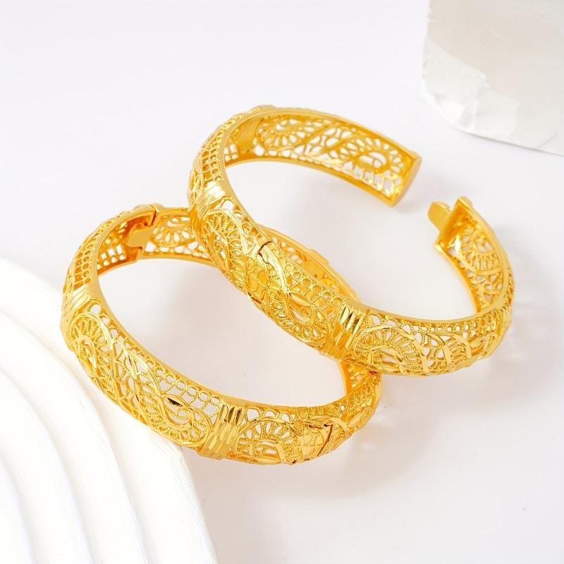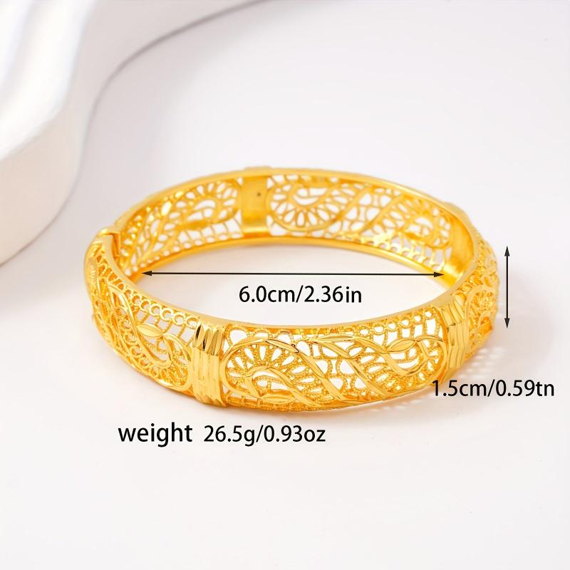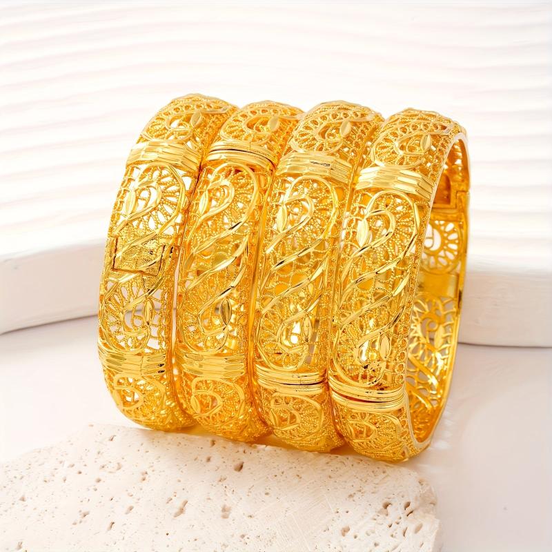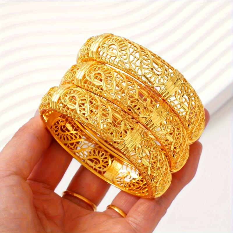 These 3 golden plated bracelets feature an openwork design that highlights a modern style while retaining classic charm. They are perfect for wearing alone or pairing with various outfits.