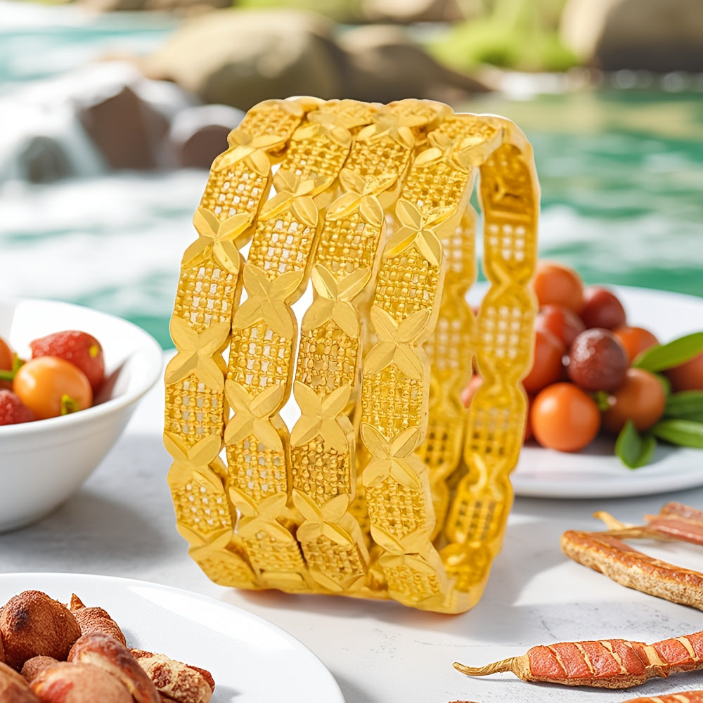 These unique bracelets feature a hollow out floral design in a minimalist yet ethnic style. Perfect for daily wear or gifting to someone special.
