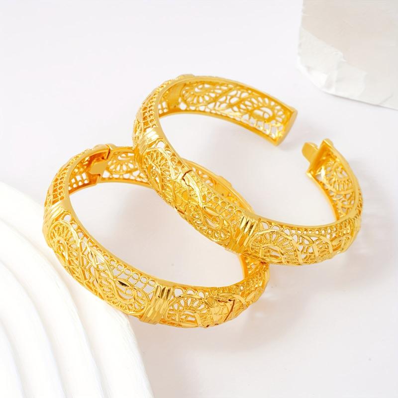 Enhance your style with these fashionable bracelets featuring a stunning openwork hollow carved design. Perfect for daily wear, festive occasions, weddings, and as a holiday gift for women.