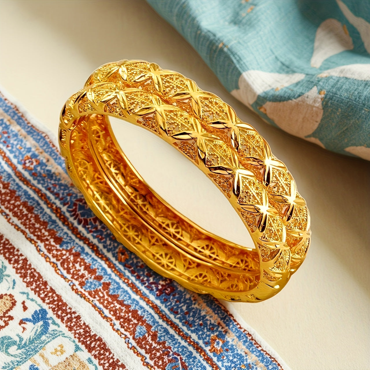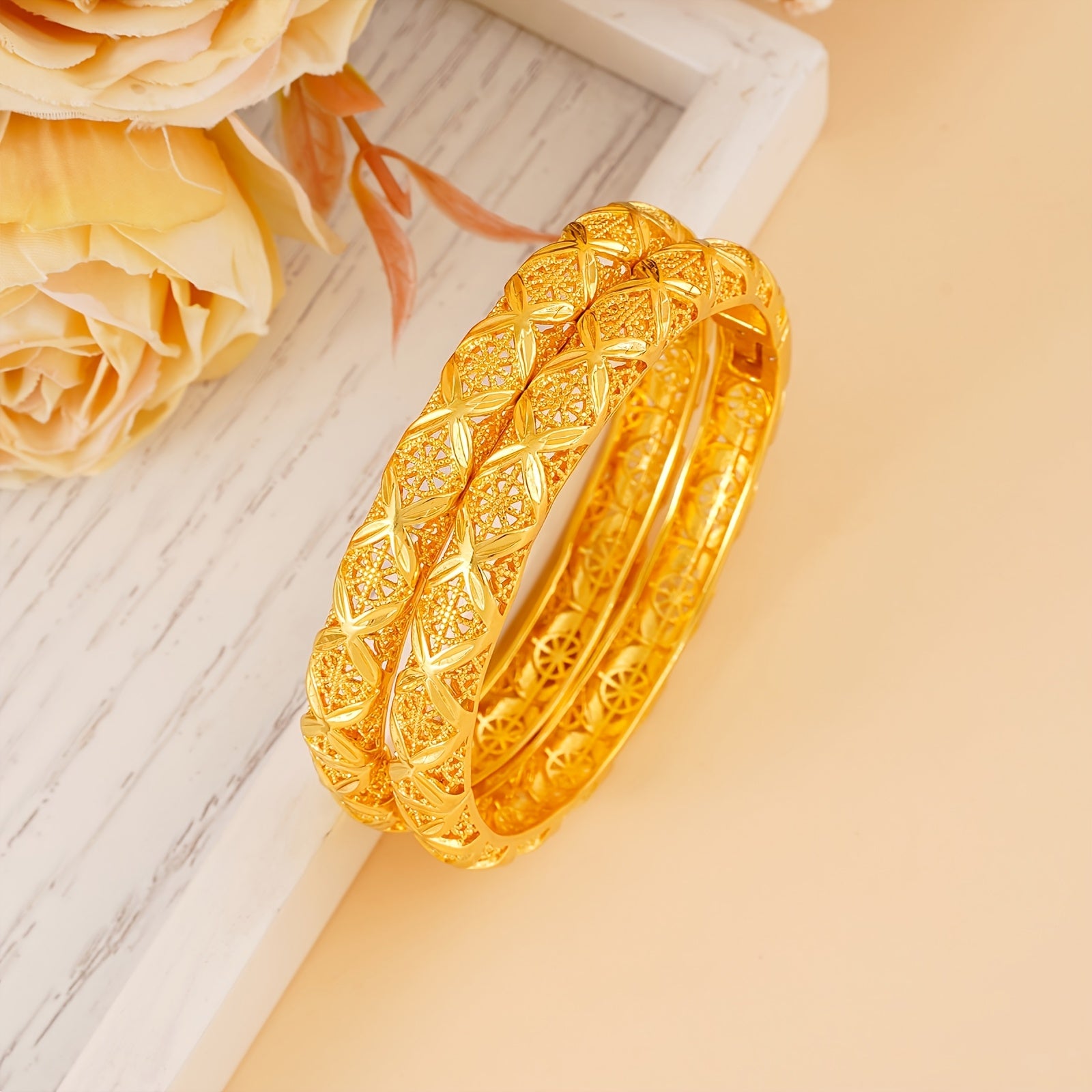 Elegant set of 3 golden plated open bangle bracelets suitable for daily wear and different occasions. Enhance your temperament and make a wonderful gift for parents and friends.