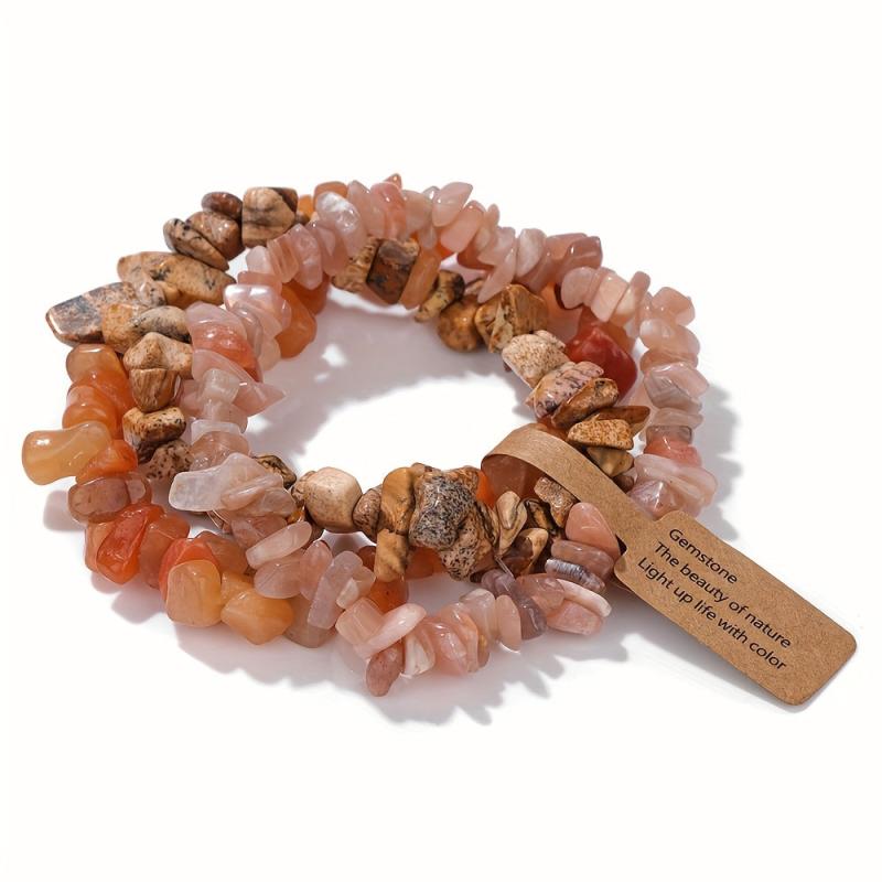 Add a touch of elegance to your outfit with this 3-piece bracelet set featuring irregular crushed stones, including amethyst. Perfect for summer layering or as a holiday gift.