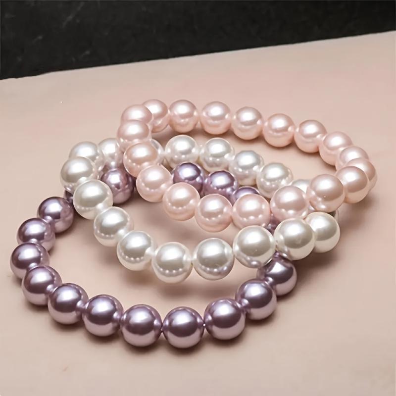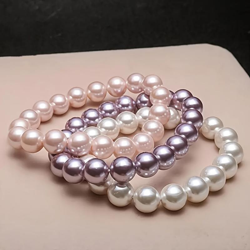 This set includes 3 freshwater and saltwater pearl bracelets in pink, purple, and retro minimalist style. It's a perfect gift for mom or girlfriend, ideal for Christmas.