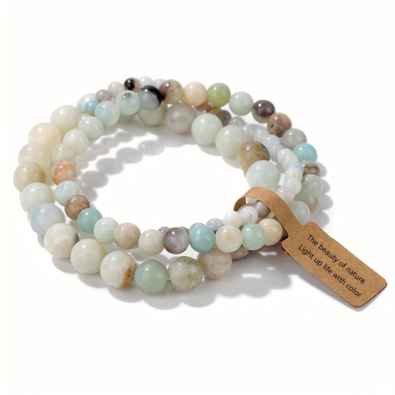 This set includes 3 stone bead bracelets in different sizes for couples to share as a token of love. The bracelets feature round beads and make a thoughtful gift for loved ones.