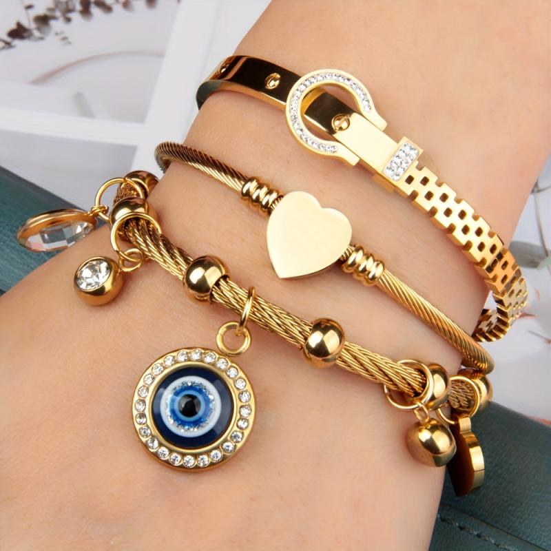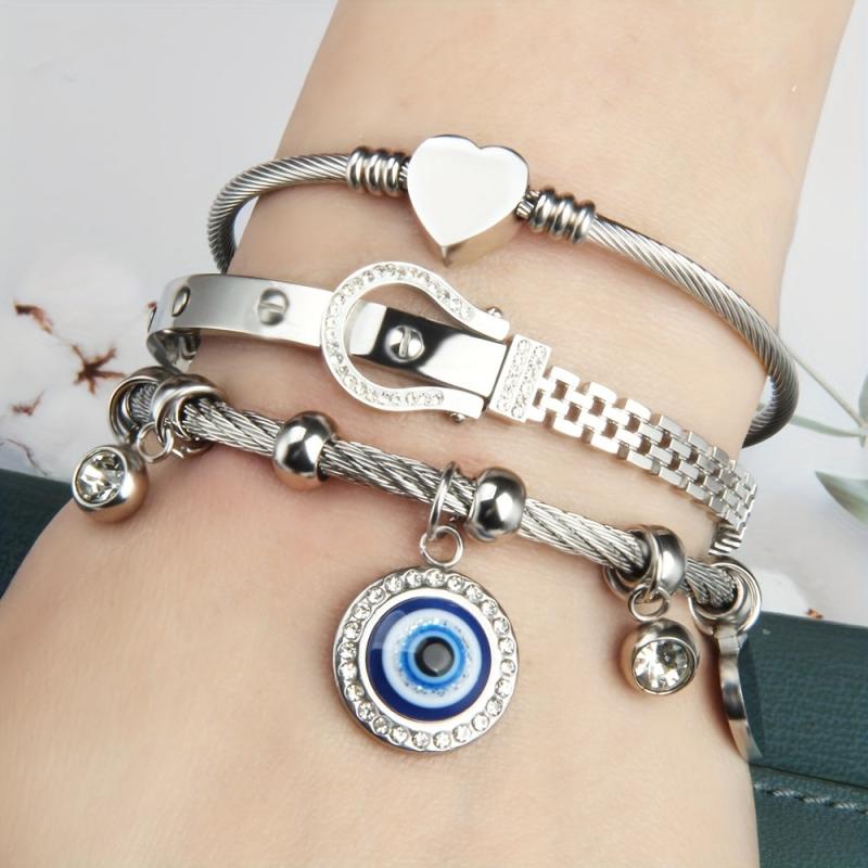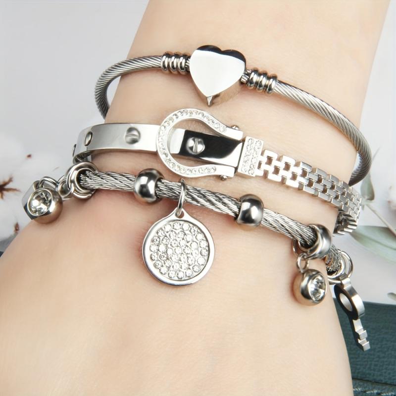 Enhance your bracelet with these 3pcs watch buckle accessories featuring an exaggerated style hanging small lock eye design. Made of stainless steel, these accessories are a perfect gift for any occasion.