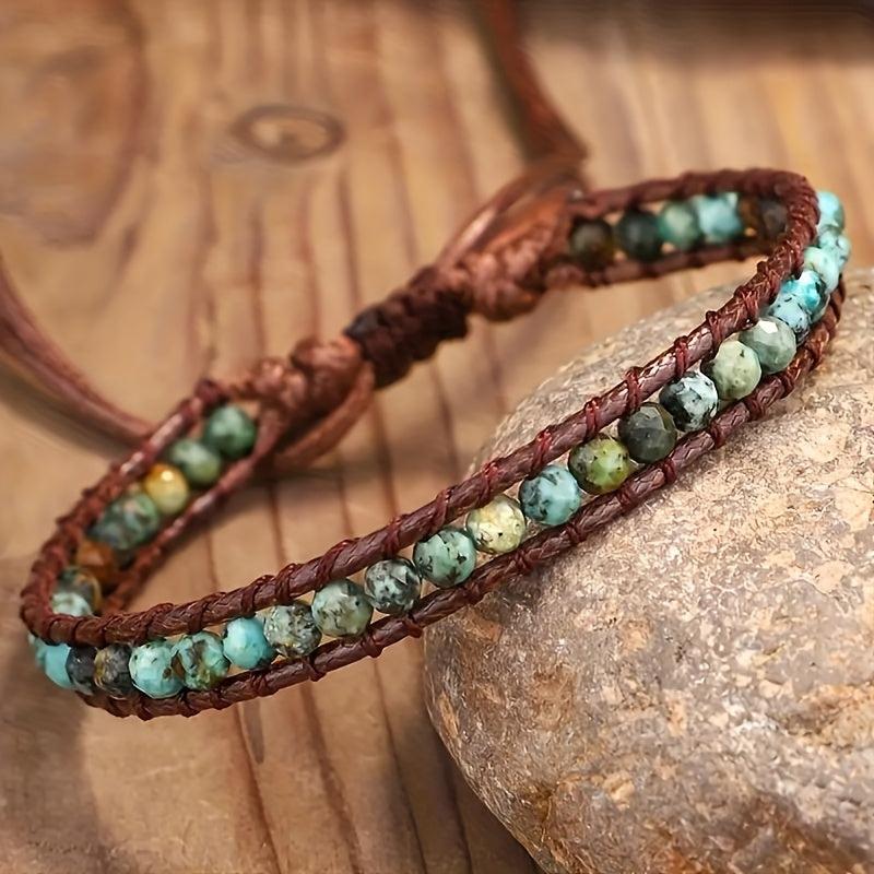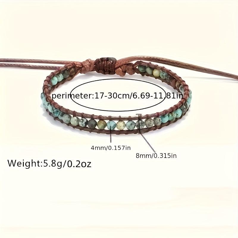 Elevate your style with this handwoven bracelet featuring 4mm African Pine natural stone beads, adjustable to fit any wrist size.