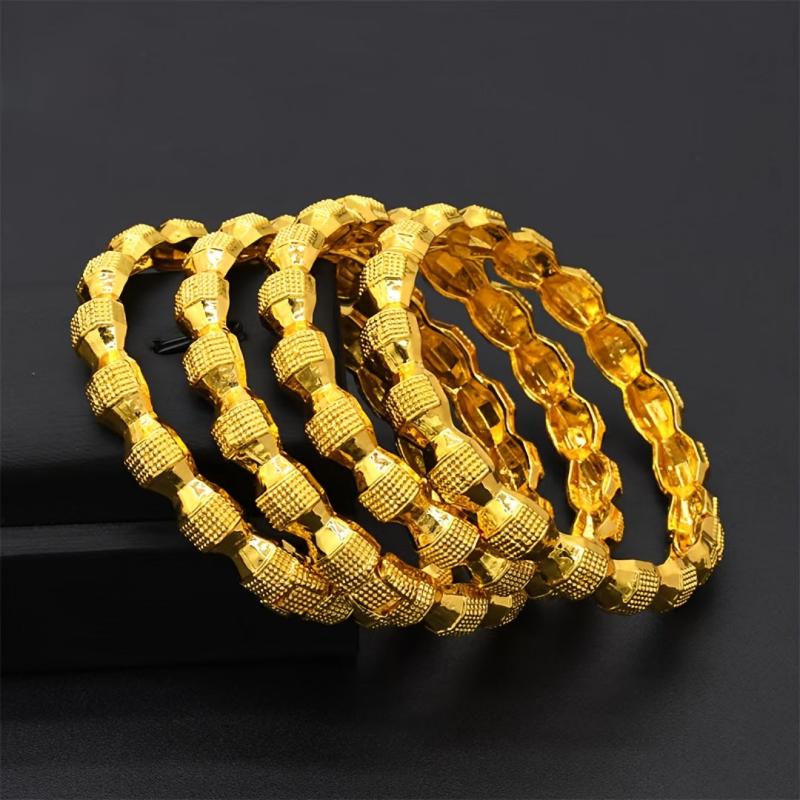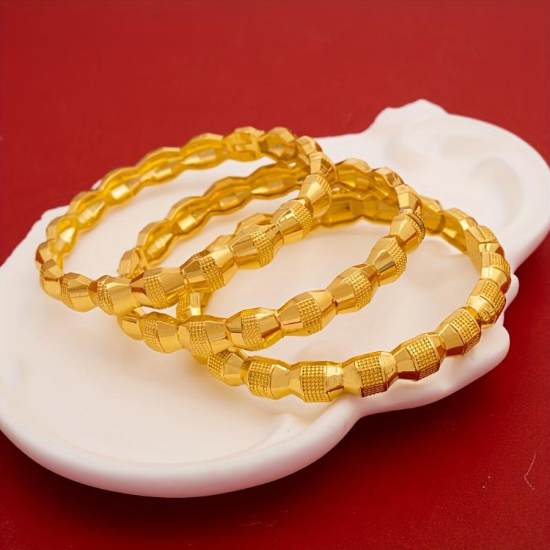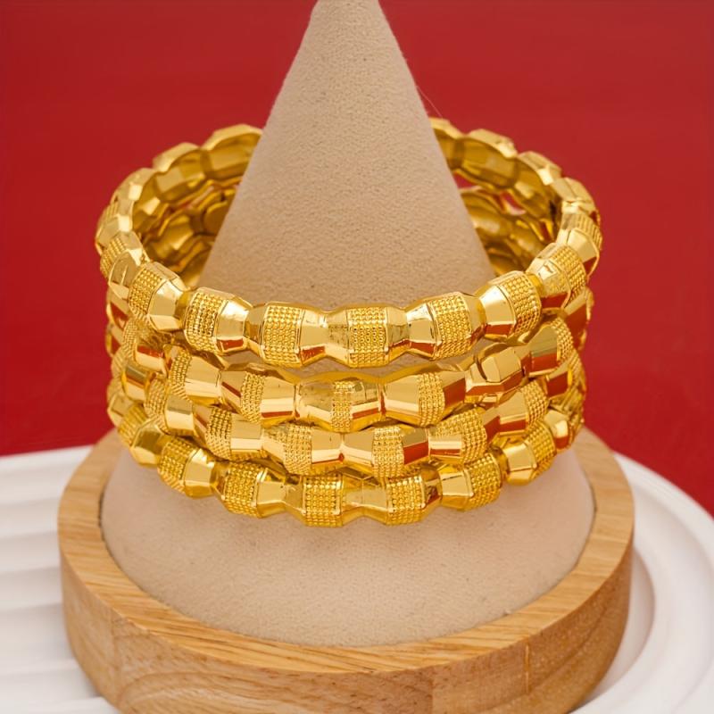 Elegant set of 4 golden open cuff bracelets with a hollow design, perfect for adding a touch of personality to any outfit. Great as a holiday gift for women or bridesmaids.