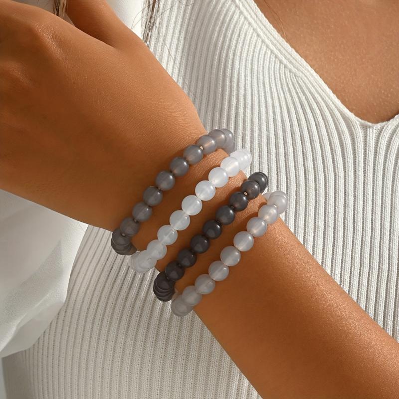 Accessorize your daily outfits in autumn with this versatile Bohemian stackable bracelet set featuring gradient beads. Perfect for matching different styles.