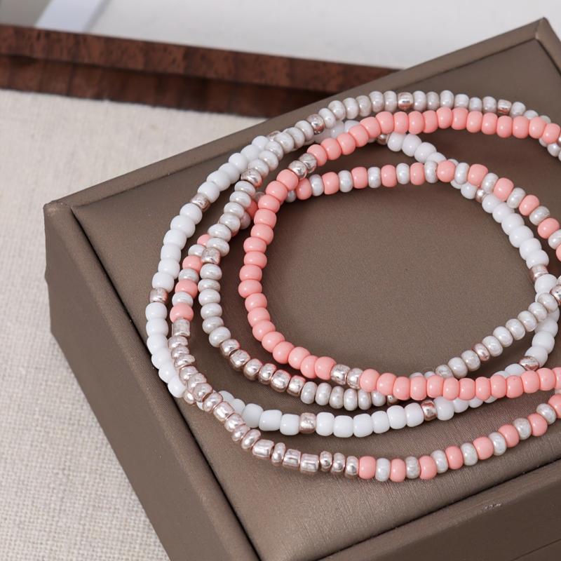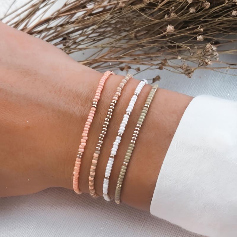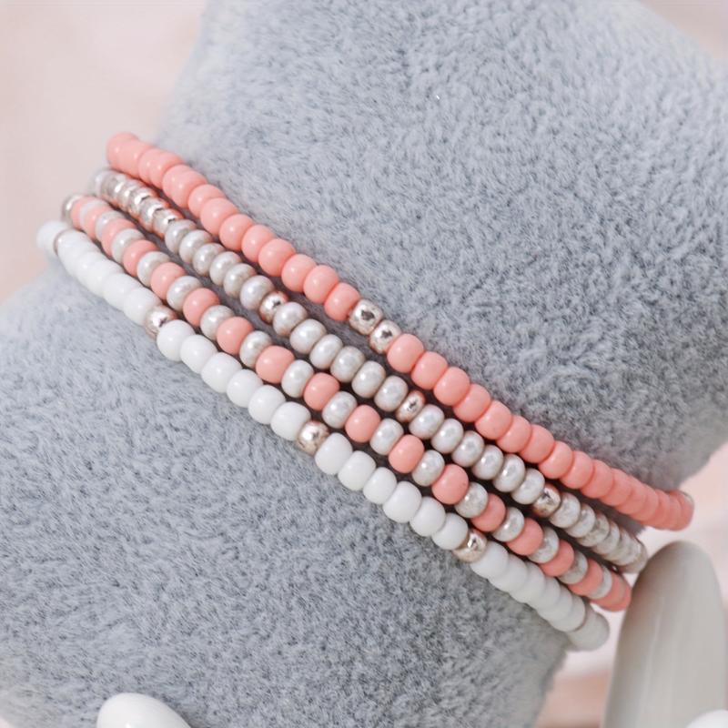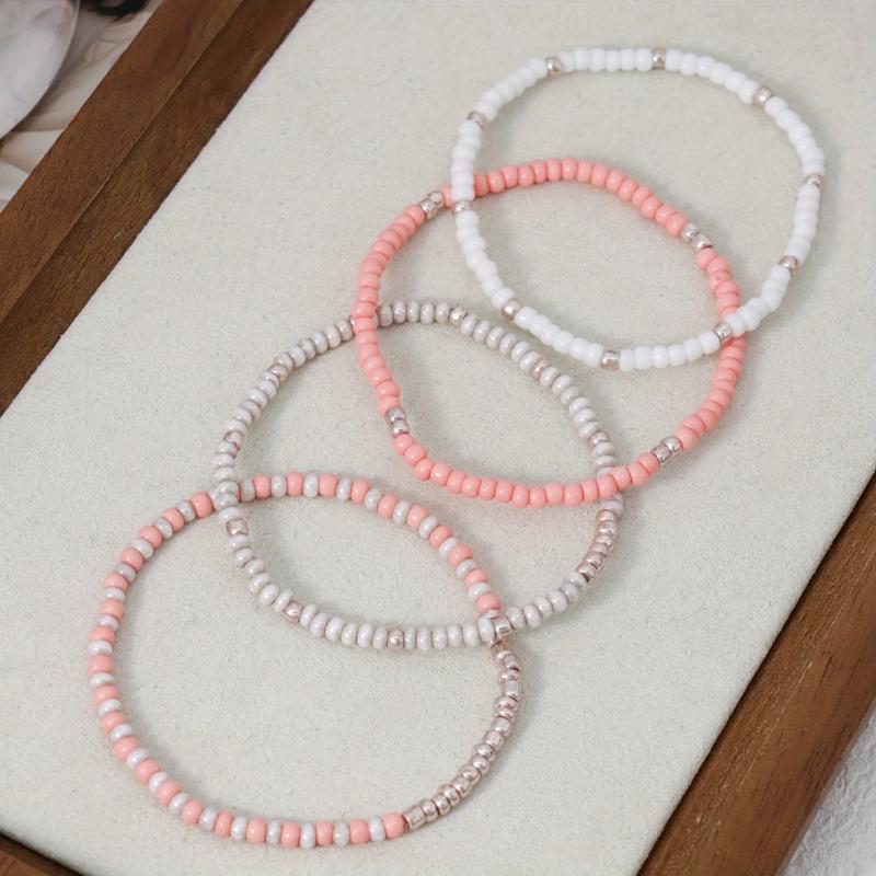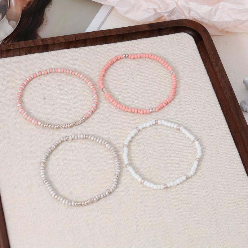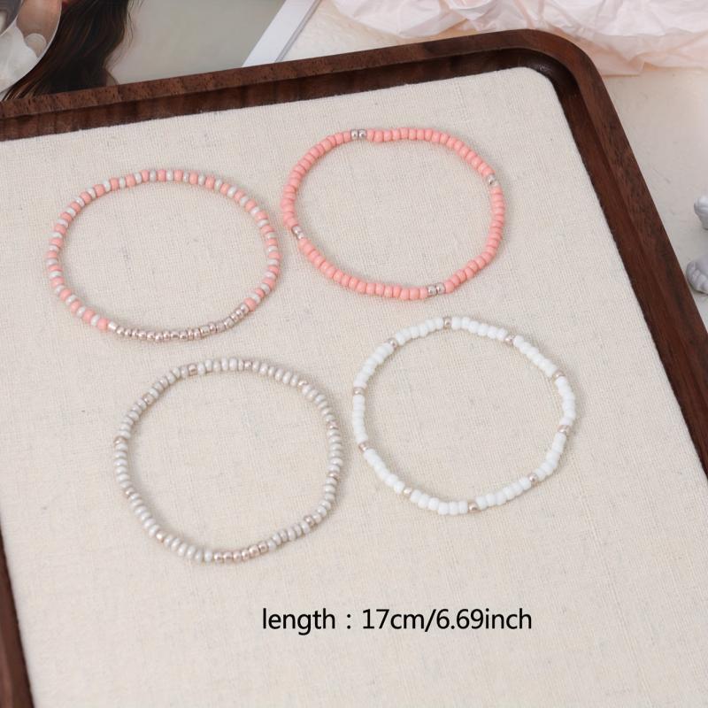 This bracelet set includes 4 stylish rice bead string elastic bracelets that are perfect for parties, vacations, or music events. Add a touch of chic and fun to your outfit with these trendy accessories.