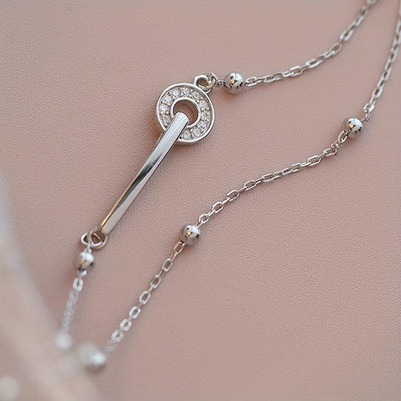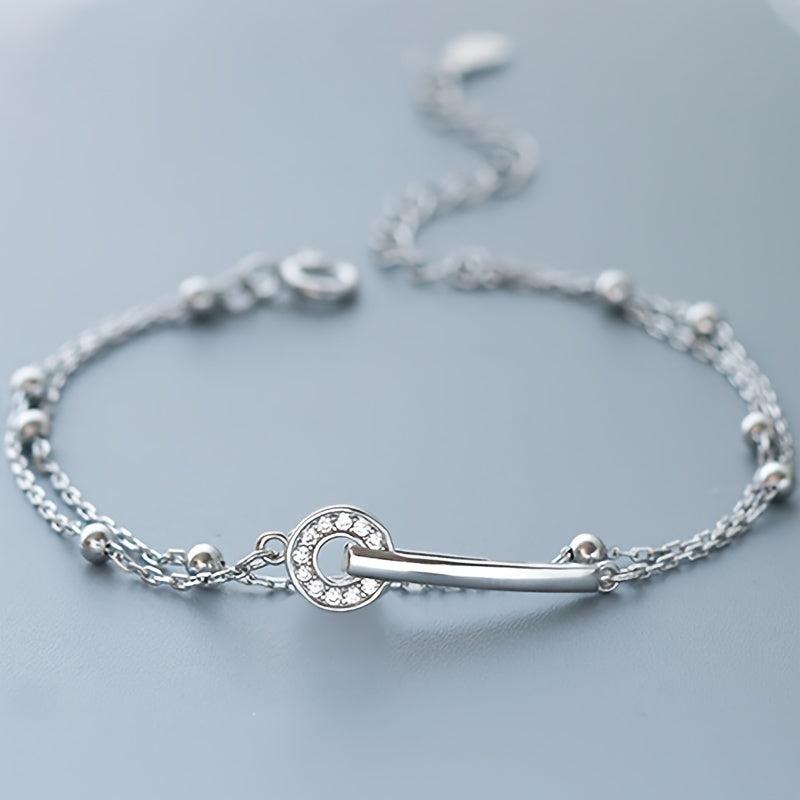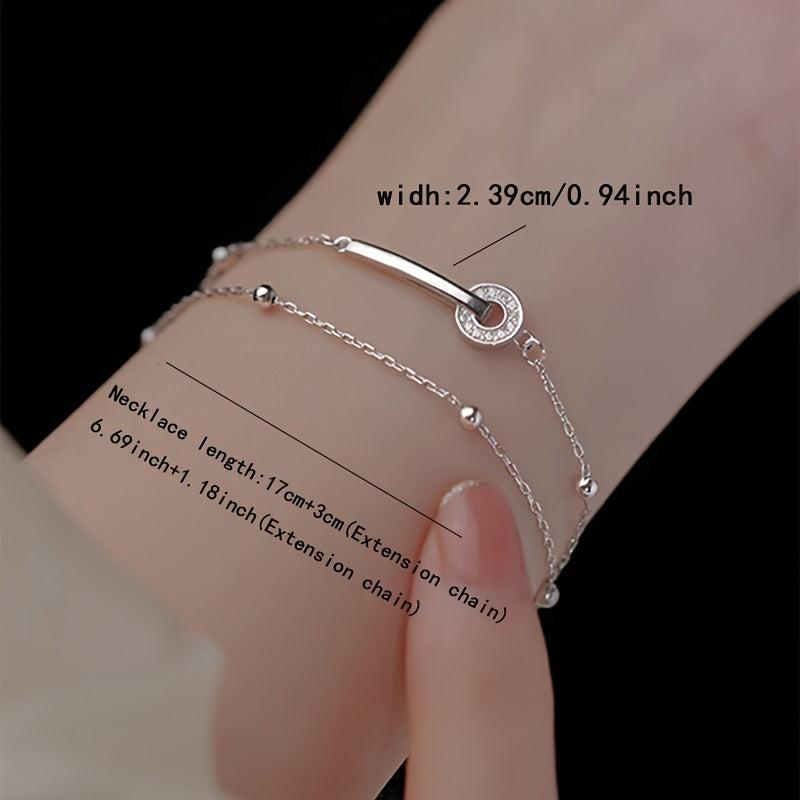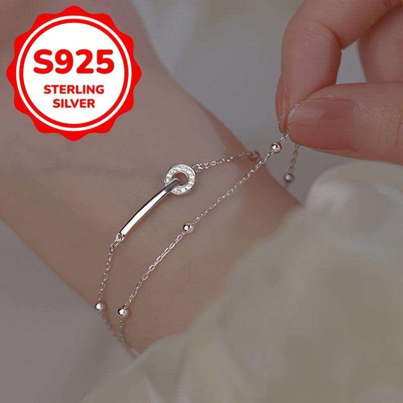 This double layer round ring bracelet is made of lightweight S925 silver, offering a unique, sophisticated, and delicate hand jewelry piece for women.