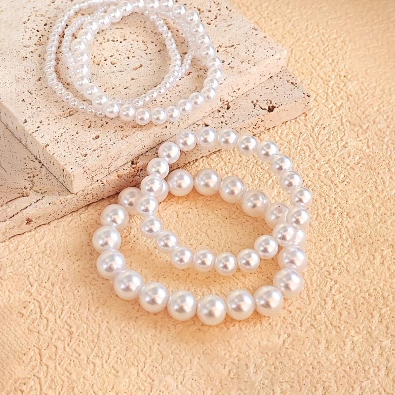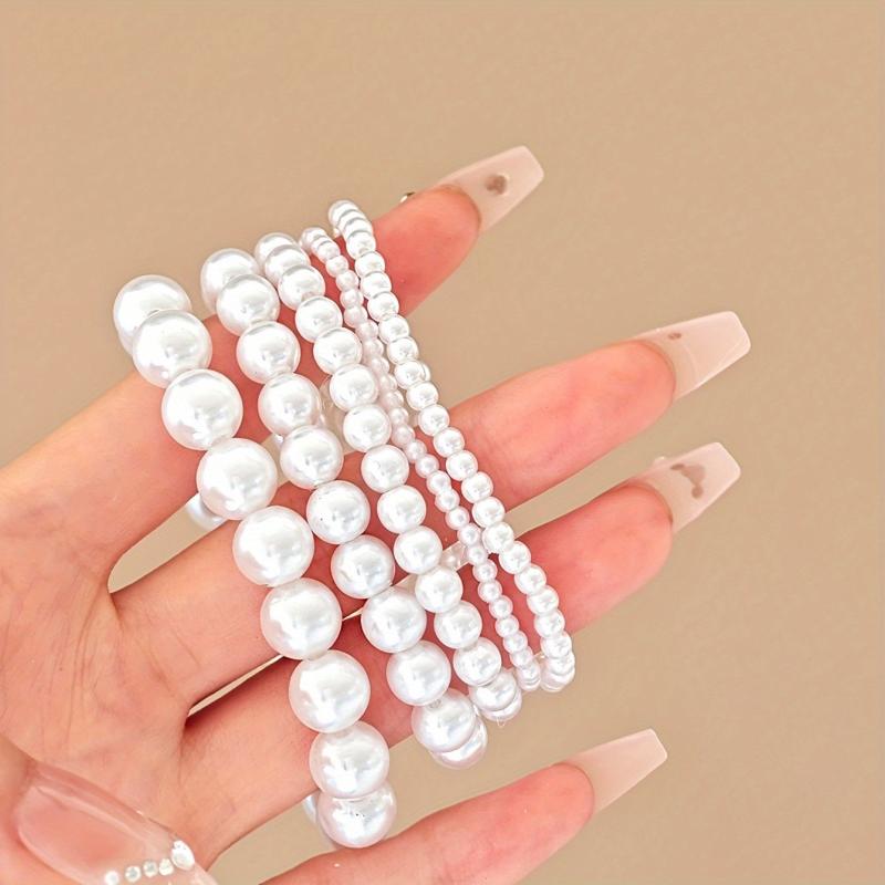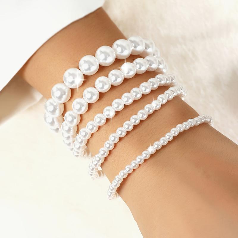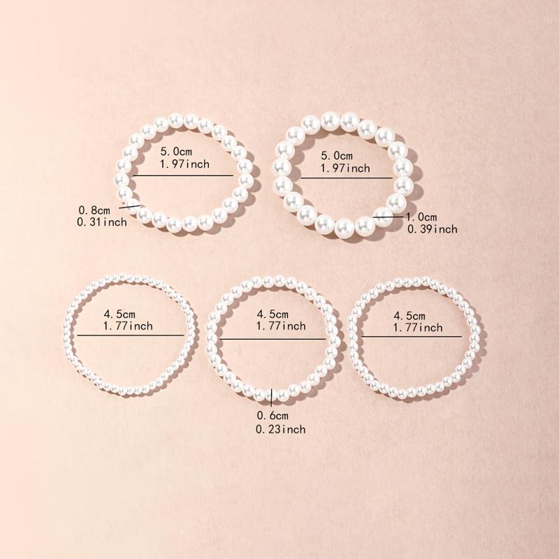This set includes 5 fashionable and versatile round beads bracelets in various geometric designs.