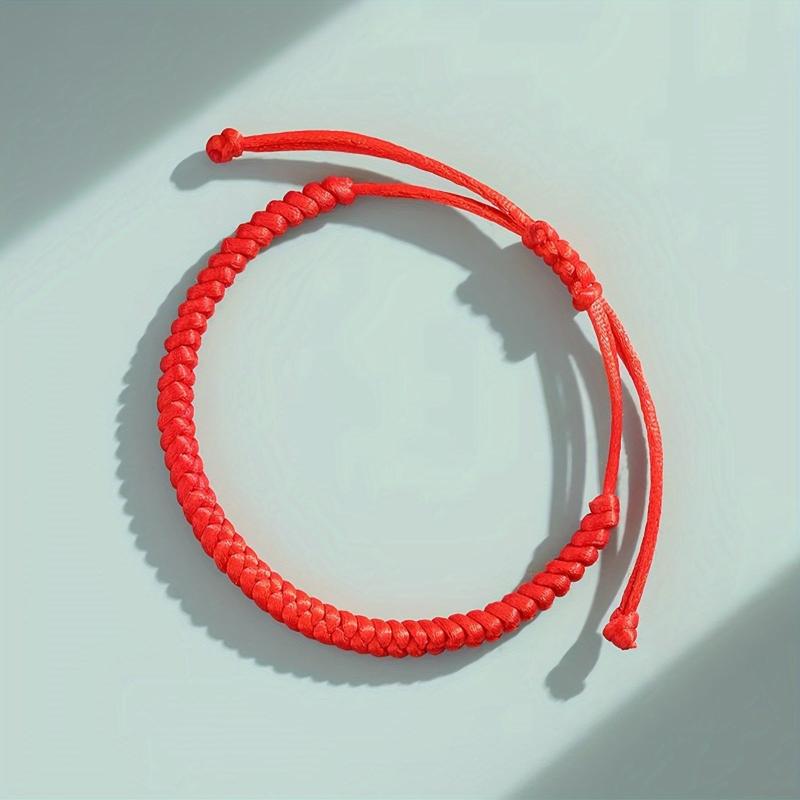 These red rope bracelets are hand woven and feature an adjustable knot for a comfortable fit. Perfect for adding a touch of luck to your outfit.