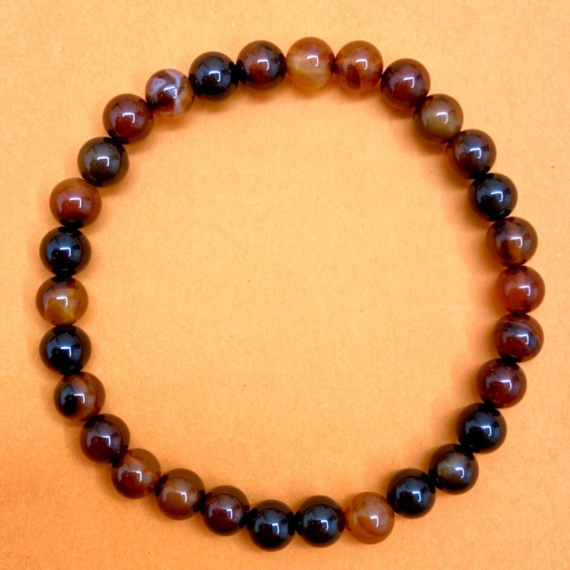 This versatile accessory features a 6mm red and agate beaded bracelet that is perfect for everyday wear. A two-tone gemstone jewelry that adds a touch of elegance to any outfit. Makes a great gift for Valentine's Day.