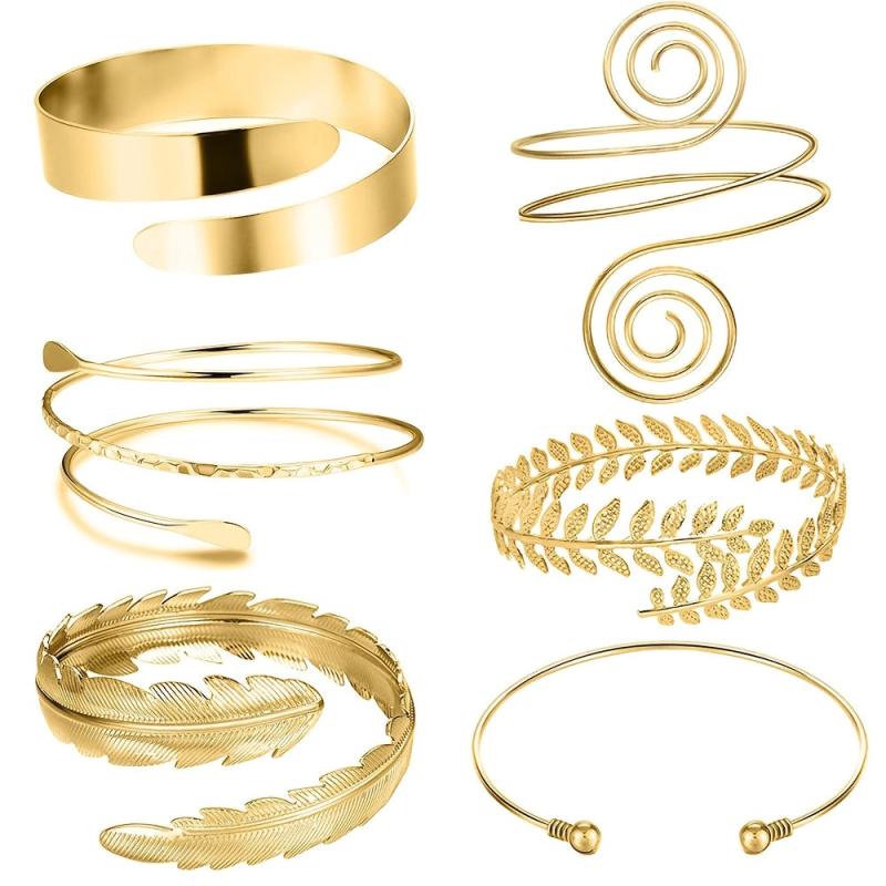 Add a touch of boldness to your look with this set of 6 golden geometric armbands. Crafted in iron, these armbands are perfect for parties, festivals, and everyday wear with a punk and minimalist style.
