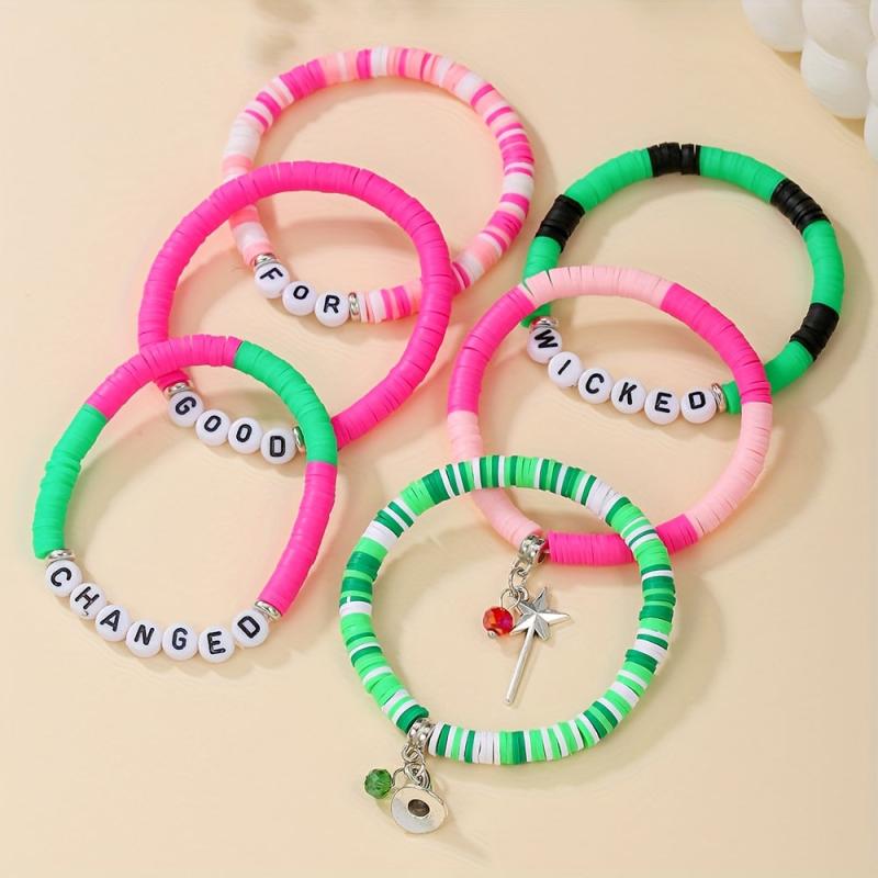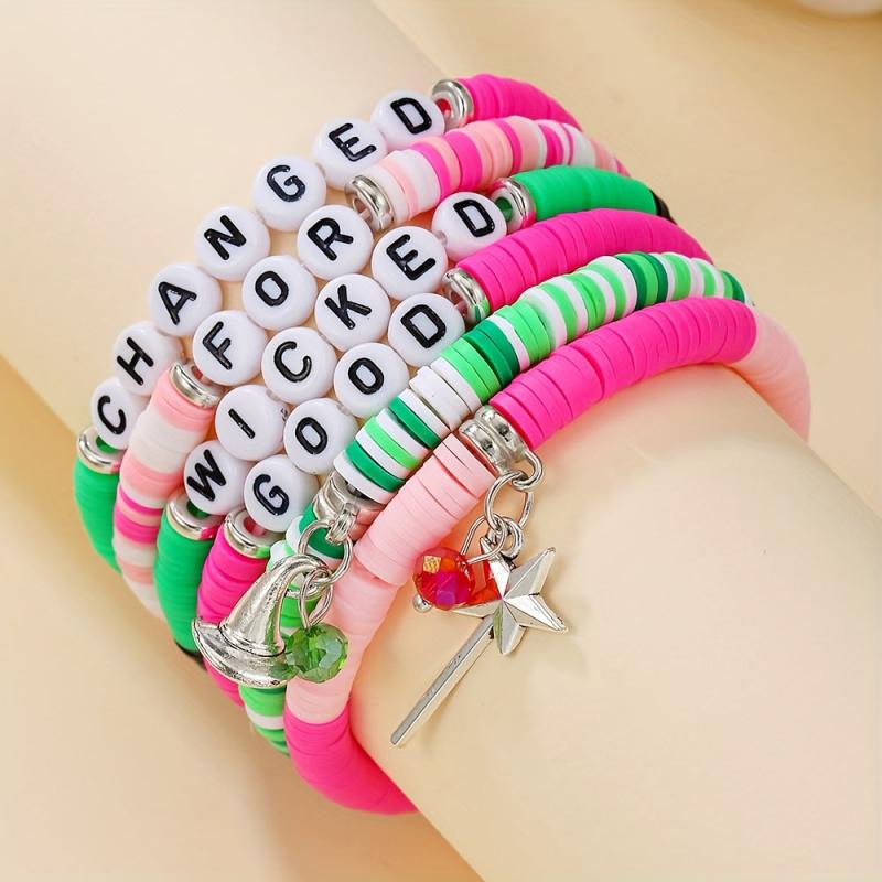 This colorful set features soft pottery bracelets with English letters, perfect for women's friendship and BFF gifts. Stackable design for versatility.