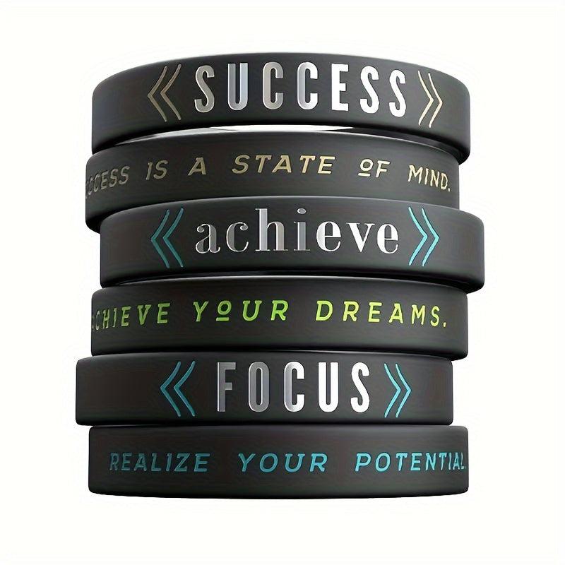 Stay motivated with this set of 6 inspiring bracelets designed for men and women. Each bracelet is a reminder to focus on dreams, success, and faith.