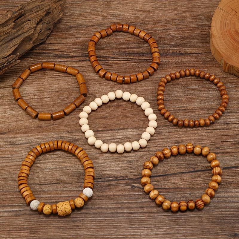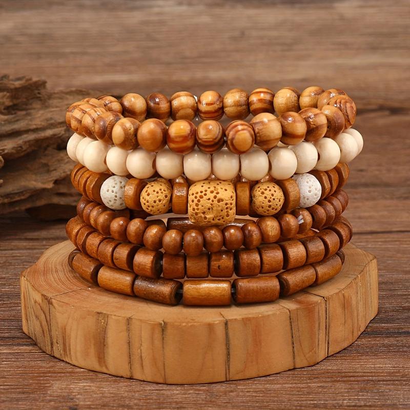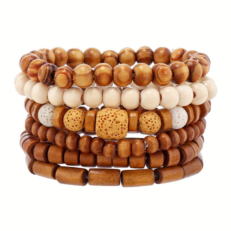 Enhance your accessory collection with these 6pcs brown wooden bead bracelets, suitable for both men and women. Perfect for autumn and winter seasons.
