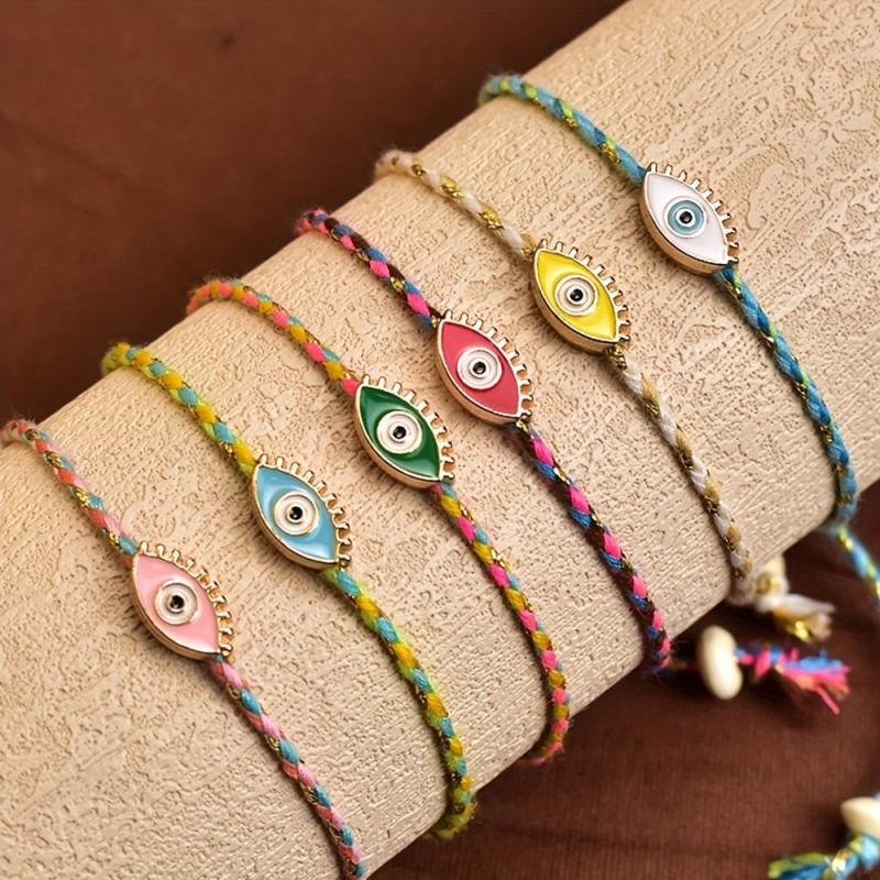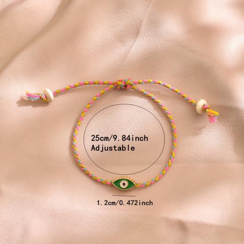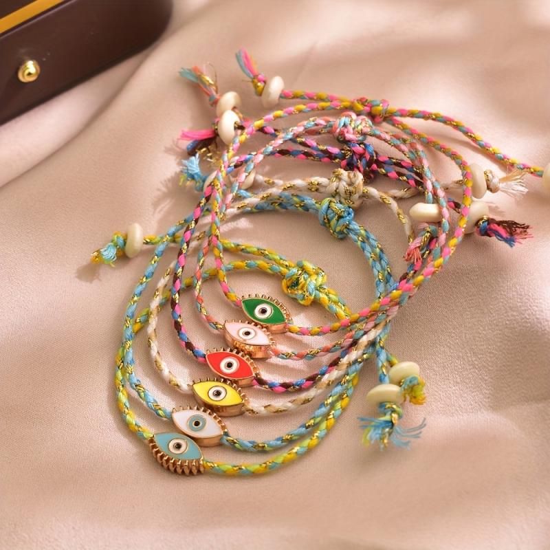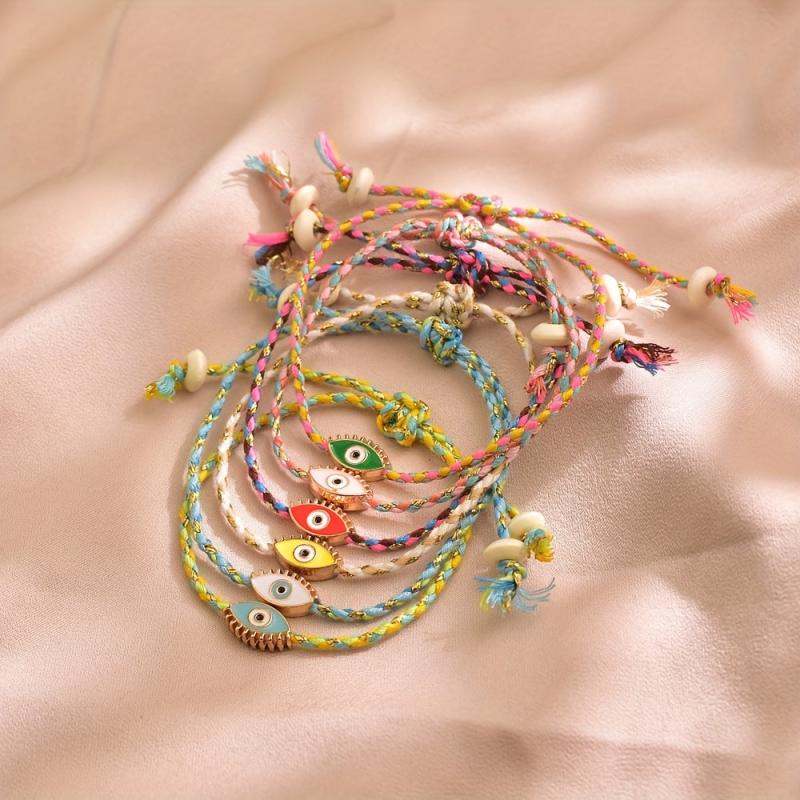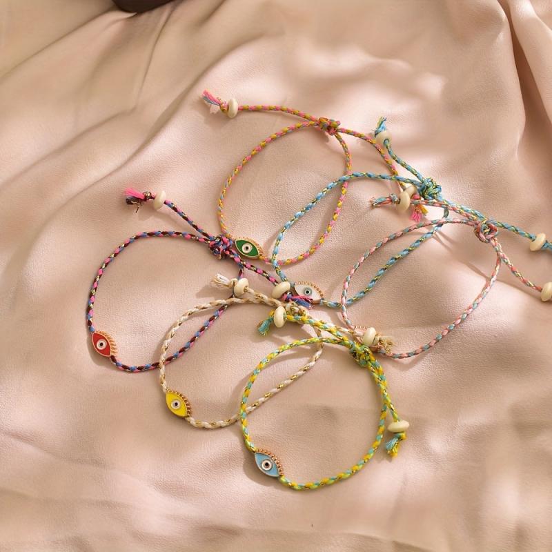 Elevate your style with this set of 6 women's woven bracelets featuring a Dopamine design perfect for spring and summer bohemian vacation looks. The devil's eye element adds a touch of mystique to your outfit.