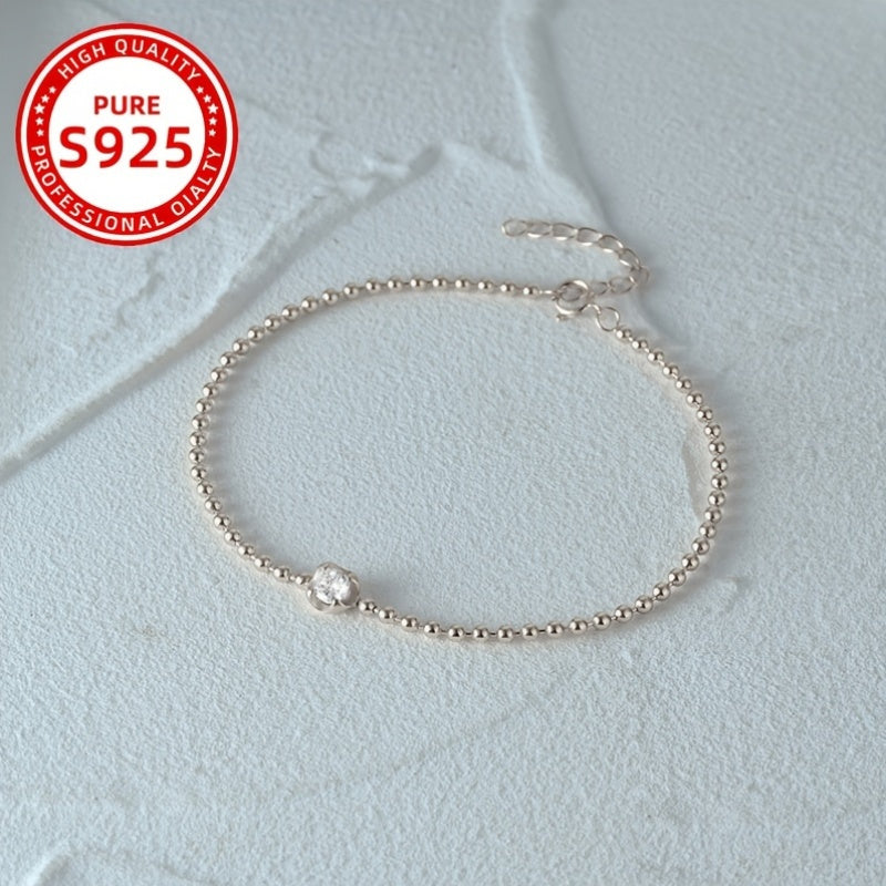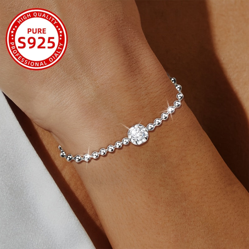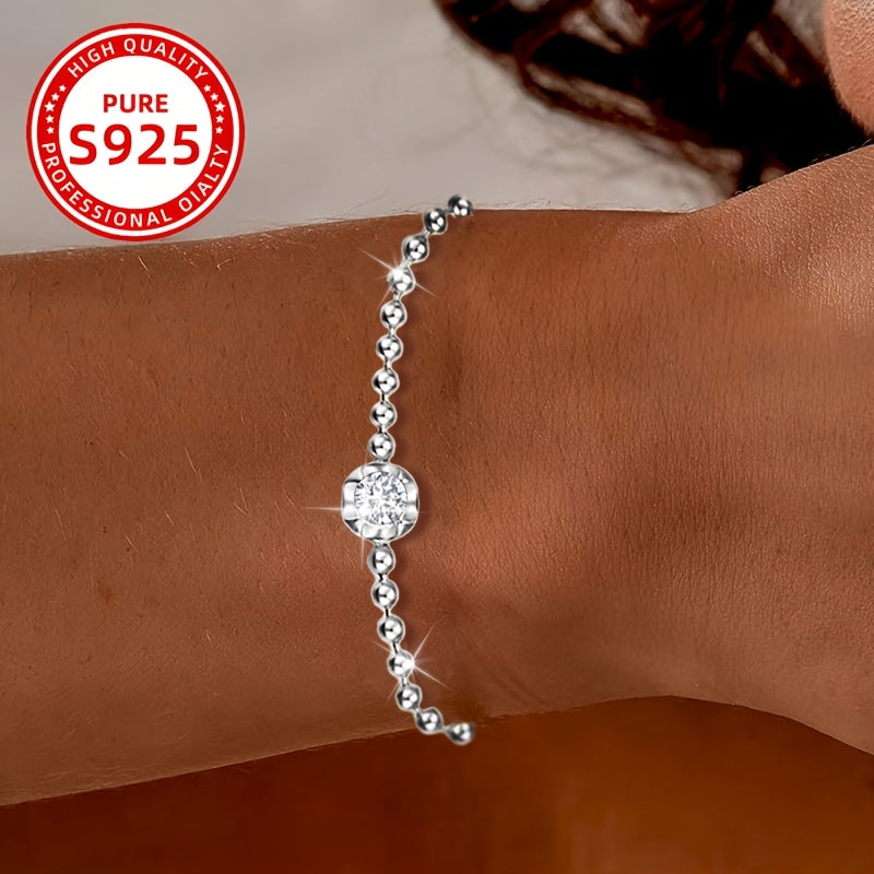 This stylish silver beaded bracelet features a sparkling cubic zirconia charm, making it perfect for daily wear, parties, and holidays. It's an ideal gift for friends and family or a great everyday accessory.